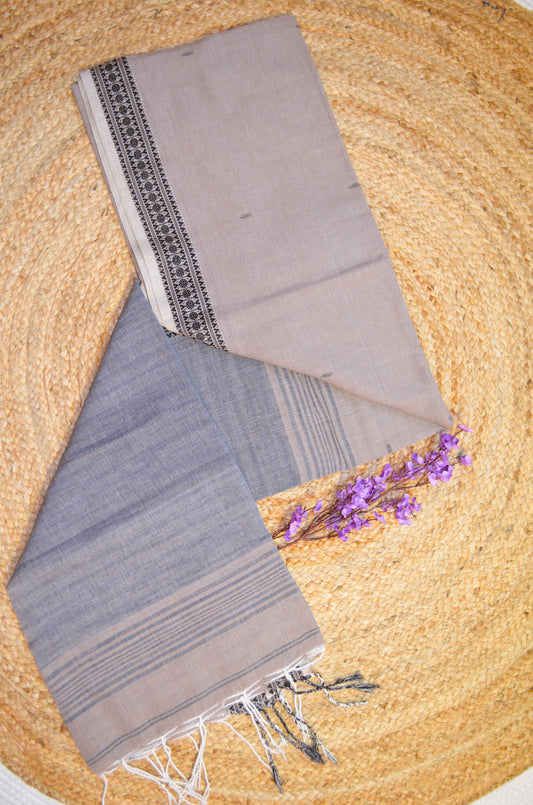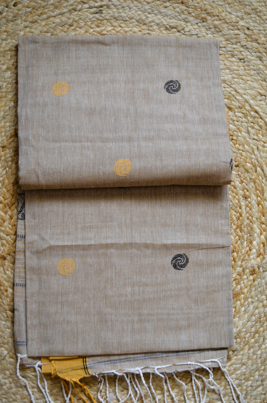 STEAL DEAL ACTIVATED!Dark Beige Buttery Mul Cotton Bengal Khadi Handloom Saree