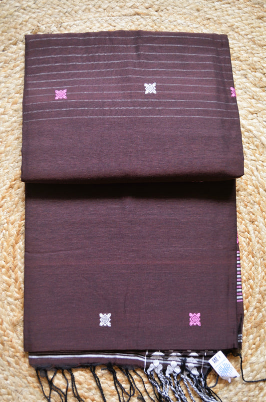 STEAL DEAL ACTIVATED!Brown Buttery Mul Cotton Bengal Muslin Handloom Saree
