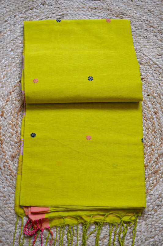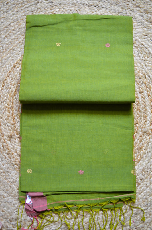 STEAL DEAL ACTIVATED!Mehndi Buttery Mul Cotton Bengal Muslin Handloom Saree