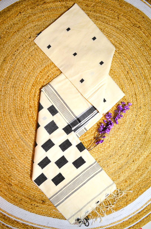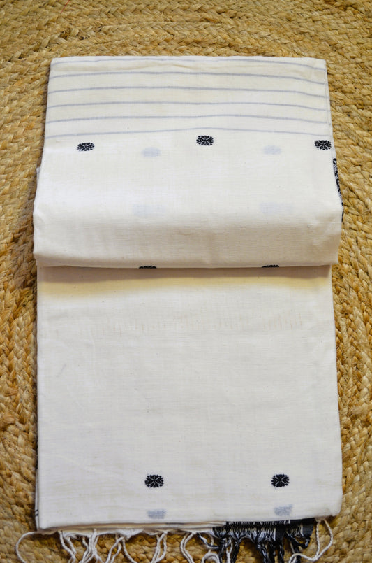 STEAL DEAL ACTIVATED!Cream Black Buttery Mul Cotton Bengal Muslin Tangail Handloom Designer Saree