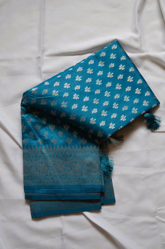 STEAL DEAL ACTIVATED!Crystal Teal Banarasi Silk Saree with Meenakari