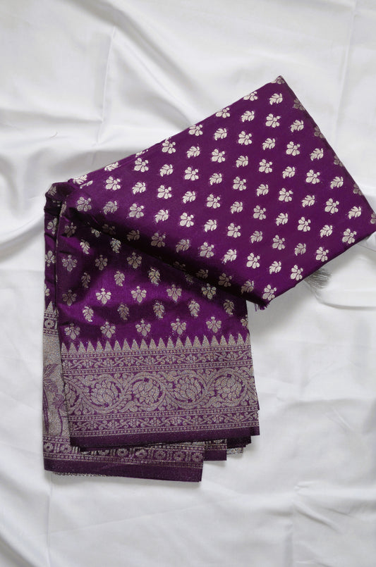 STEAL DEAL ACTIVATED!Purple Banarasi Zari Velvet Silk Saree