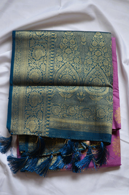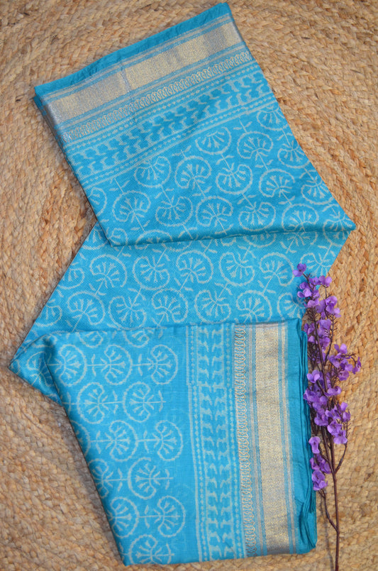 STEAL DEAL ACTIVATED!Cyan Kota Block Print Vegan Silk Handloom Saree