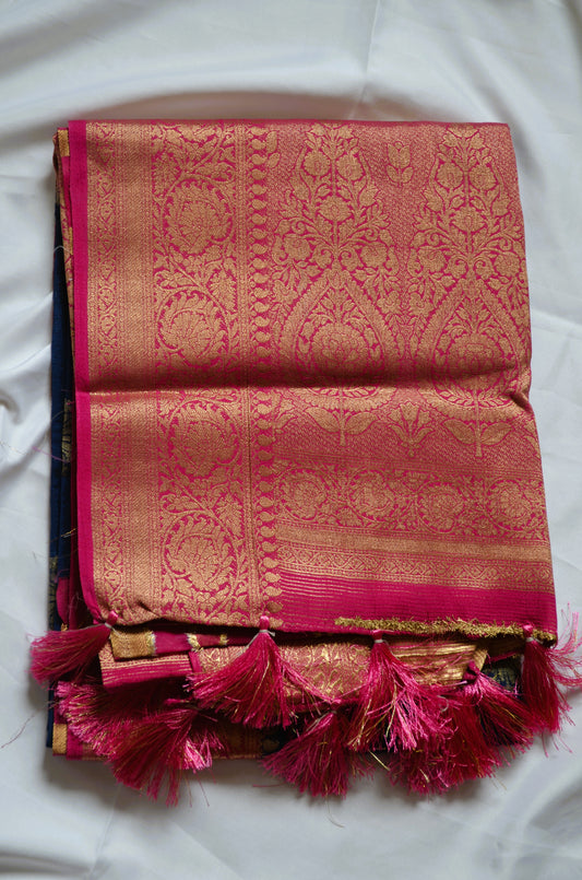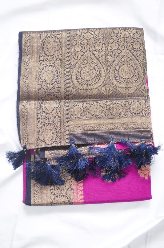 STEAL DEAL ACTIVATED!Navy Blue Banarasi Zari Crepe Silk Saree