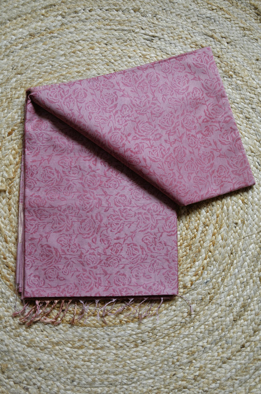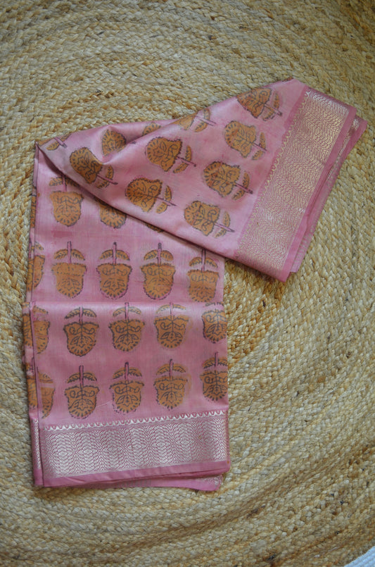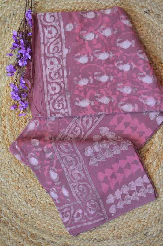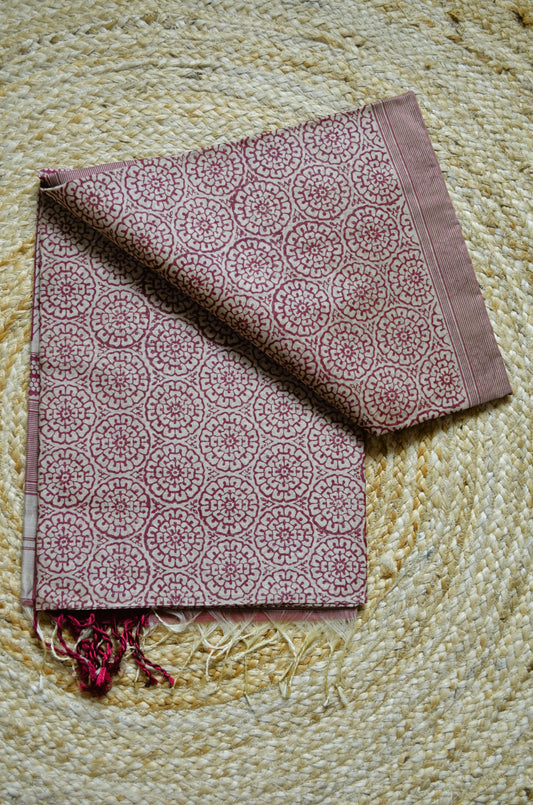 STEAL DEAL ACTIVATED!Mauve Block Print Pure Silk Handloom Saree