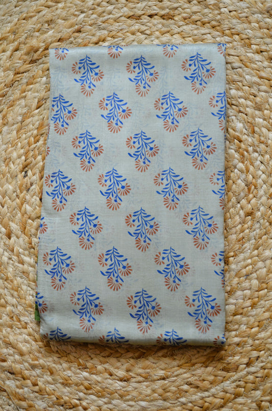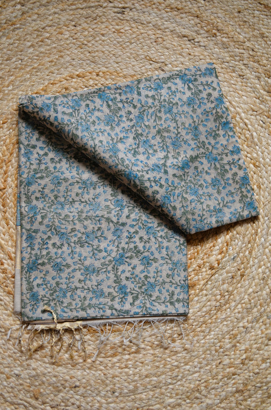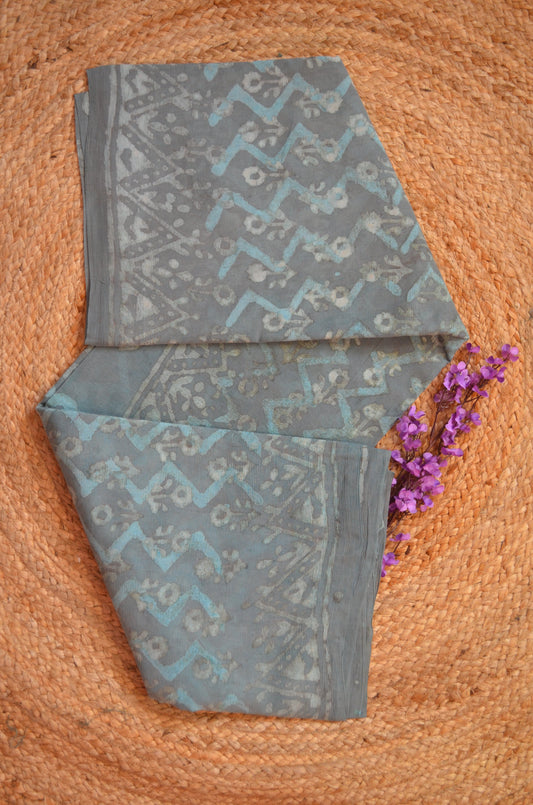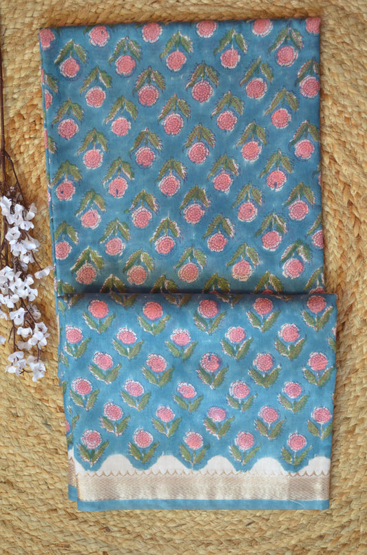 STEAL DEAL ACTIVATED!Slate Blue Chiffon Bagru Print Vegan Silk Handloom Saree
