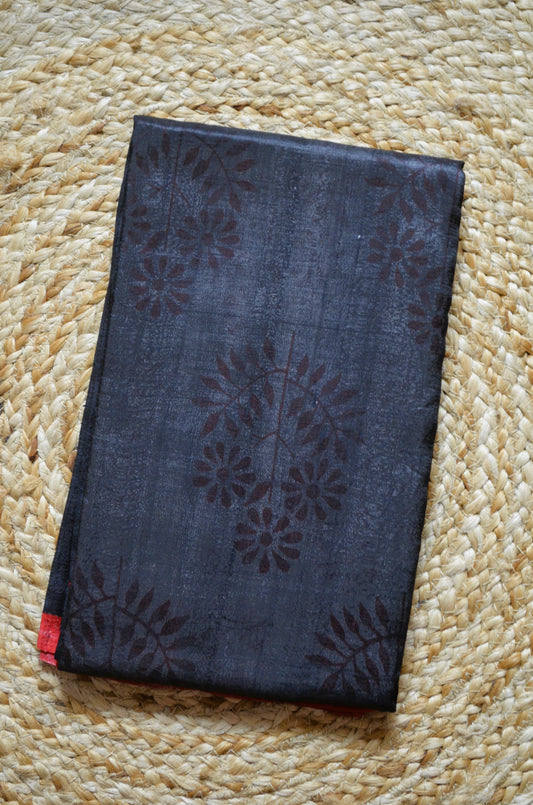 STEAL DEAL ACTIVATED!Black Block Print Pure Silk Handloom Saree