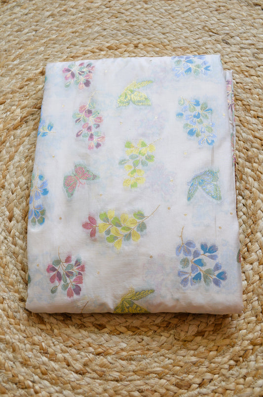 STEAL DEAL ACTIVATED!White Floral Print Vegan Silk Handloom Saree