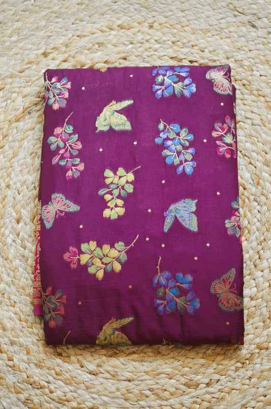 STEAL DEAL ACTIVATED!Wine Contemporary Jacquard Vegan Silk Handloom Saree