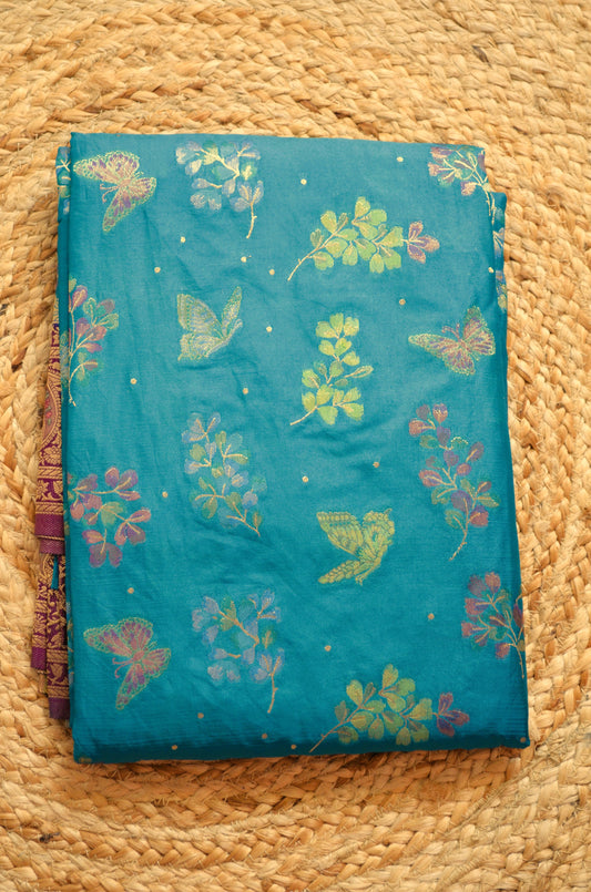 STEAL DEAL ACTIVATED!Cyan Banarasi Zari Velvet Silk Saree