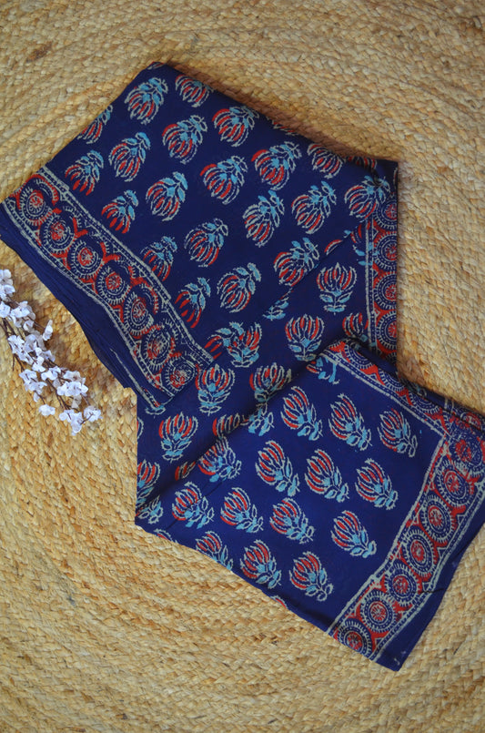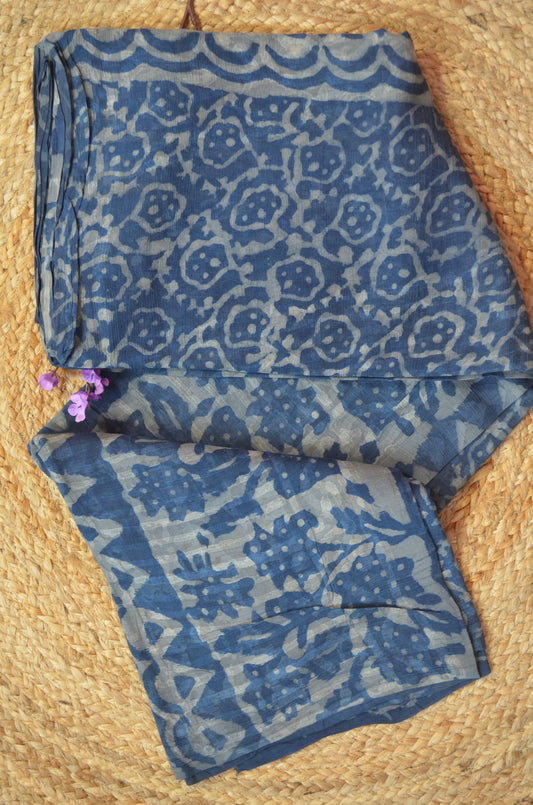 Navy Chiffon Bagru Print Vegan Silk Handloom Saree