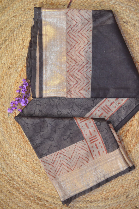 STEAL DEAL ACTIVATED!Black Kota Bagru Print Vegan Silk Handloom Saree