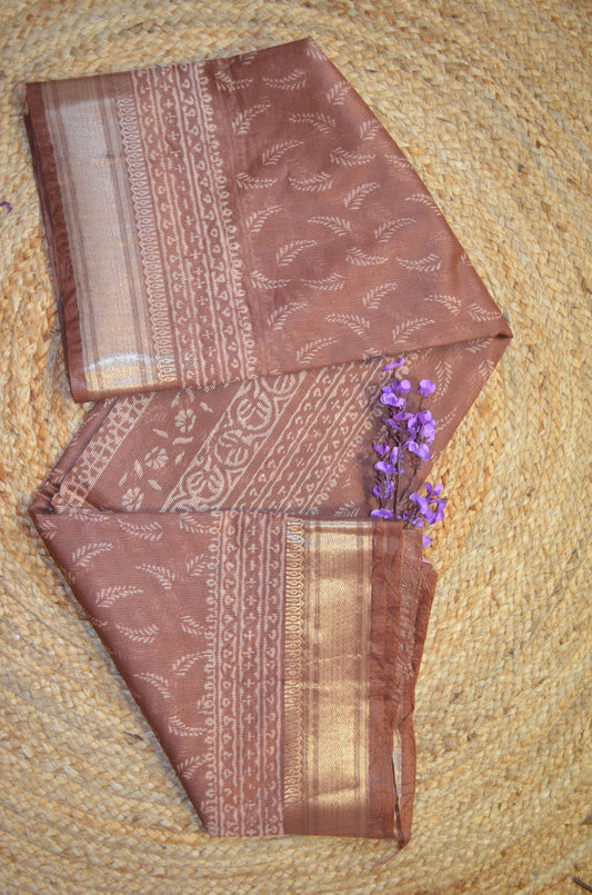 STEAL DEAL ACTIVATED!Chocolate Brown Kota Block Print Vegan Silk Handloom Saree