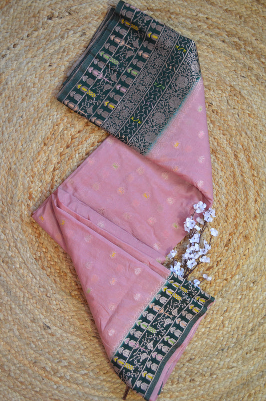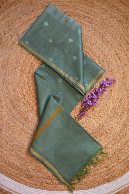 STEAL DEAL ACTIVATED!Bottle Green Buttery Mul Cotton Bengal Muslin Handloom Saree
