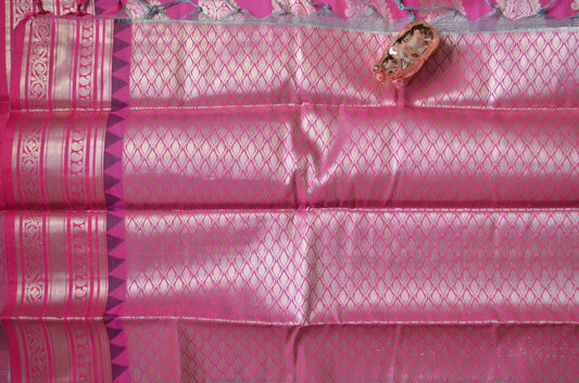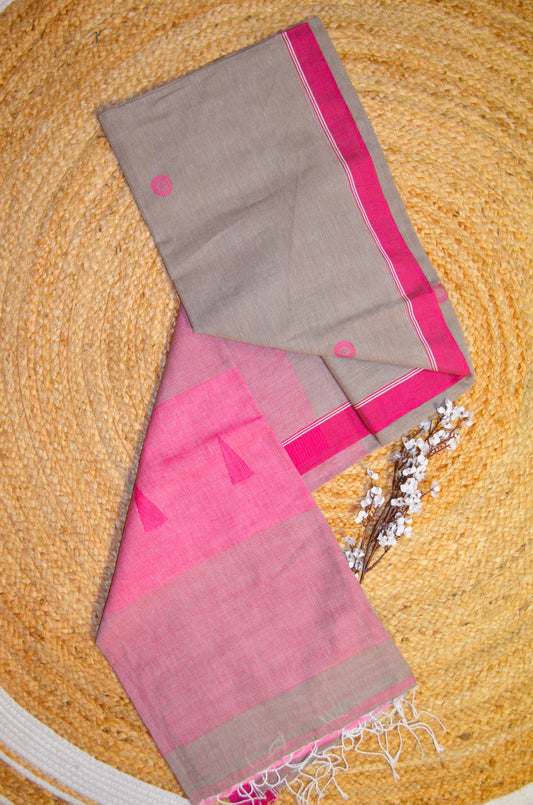 Grey Magenta and Black Kota Gadwal Cotton Silk Handloom Saree