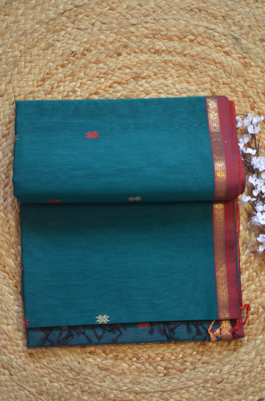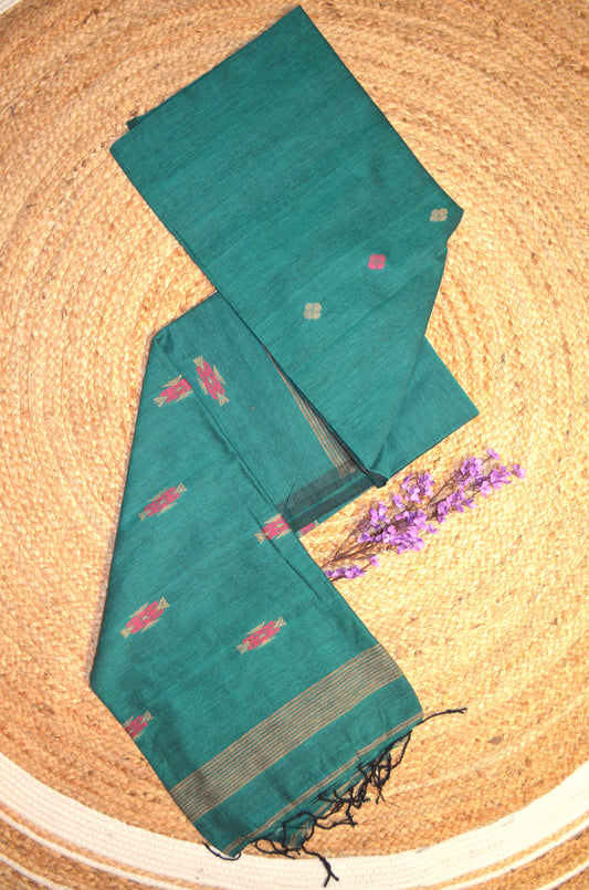 STEAL DEAL ACTIVATED!Dark Teal Buttery Mul Cotton Bengal Muslin Handloom Saree