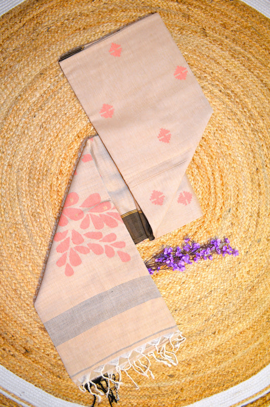 STEAL DEAL ACTIVATED!Beige Bengal Muslin Butter Cotton Handloom Saree