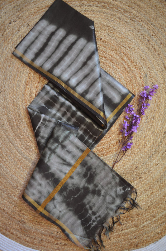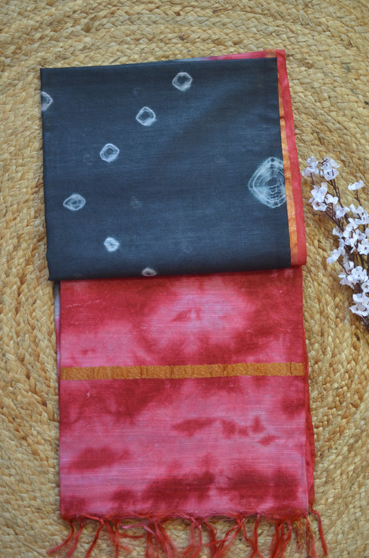 STEAL DEAL ACTIVATED!Black Shibori Vegan Silk Handloom Saree