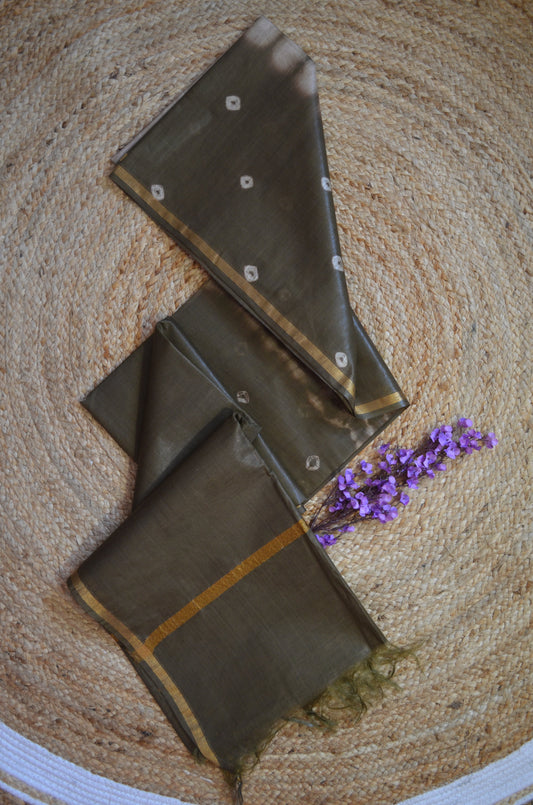 STEAL DEAL ACTIVATED!Olive Buttery Mul Cotton Bengal Muslin Handloom Saree