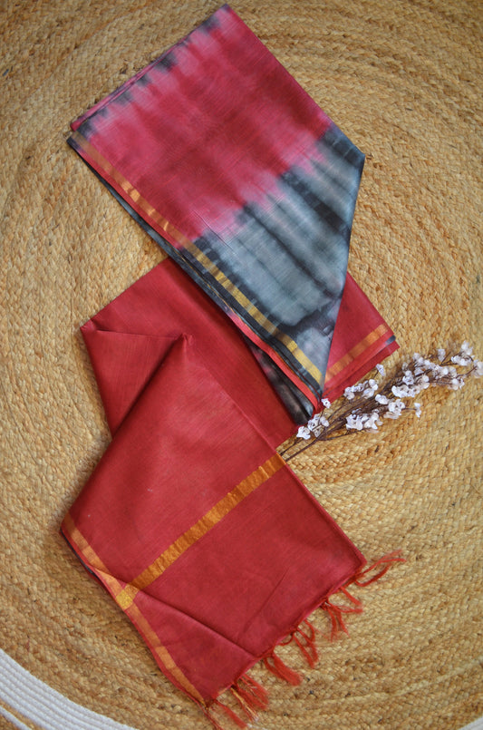 STEAL DEAL ACTIVATED!Slate Magenta Shibori Vegan Silk Handloom Saree