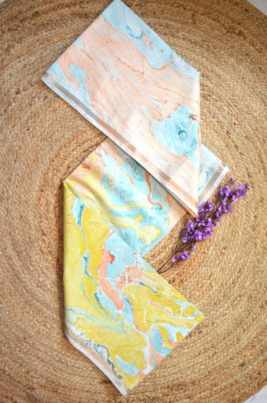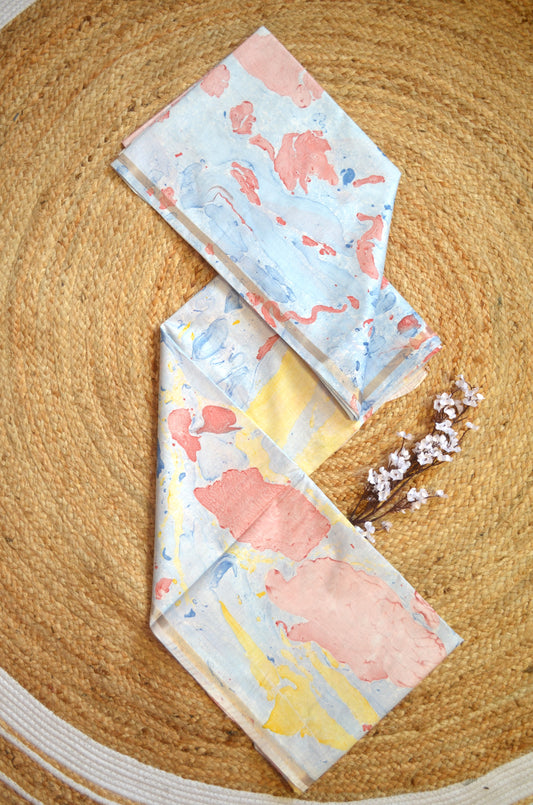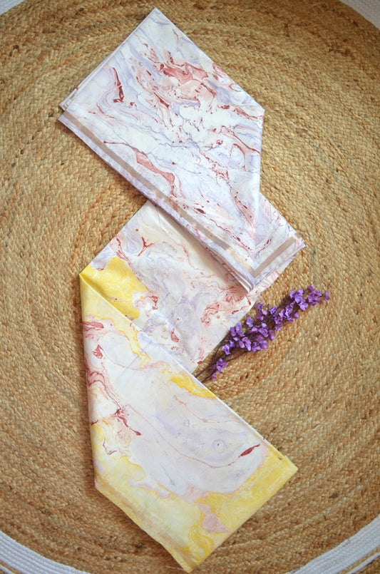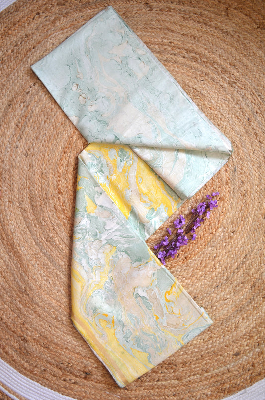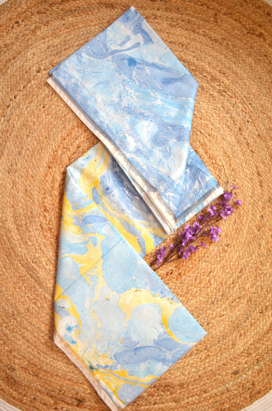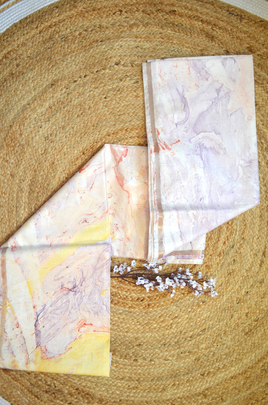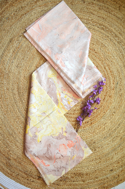 STEAL DEAL ACTIVATED!White Marble Print Vegan Silk Handloom Saree