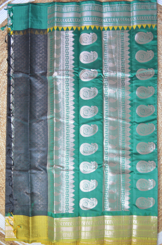 STEAL DEAL ACTIVATED!Black Green and Yellow Kota Gadwal Cotton Silk Handloom Saree
