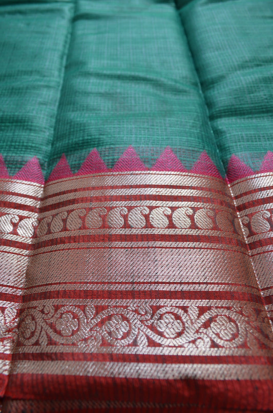 STEAL DEAL ACTIVATED!Jungle Green Magenta and Red Kota Gadwal Cotton Silk Handloom Saree