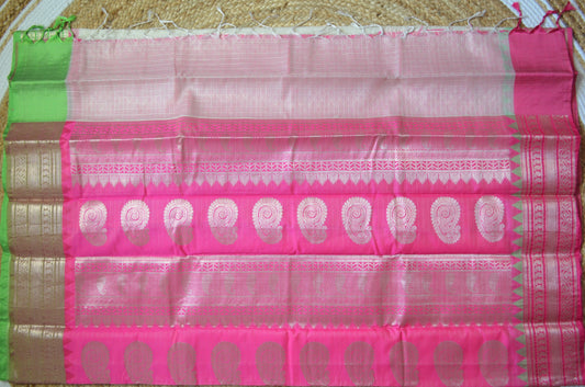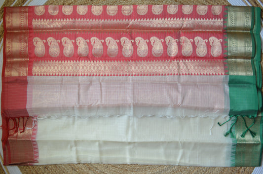 Cream Magenta and Green Kota Gadwal Cotton Silk Handloom Saree
