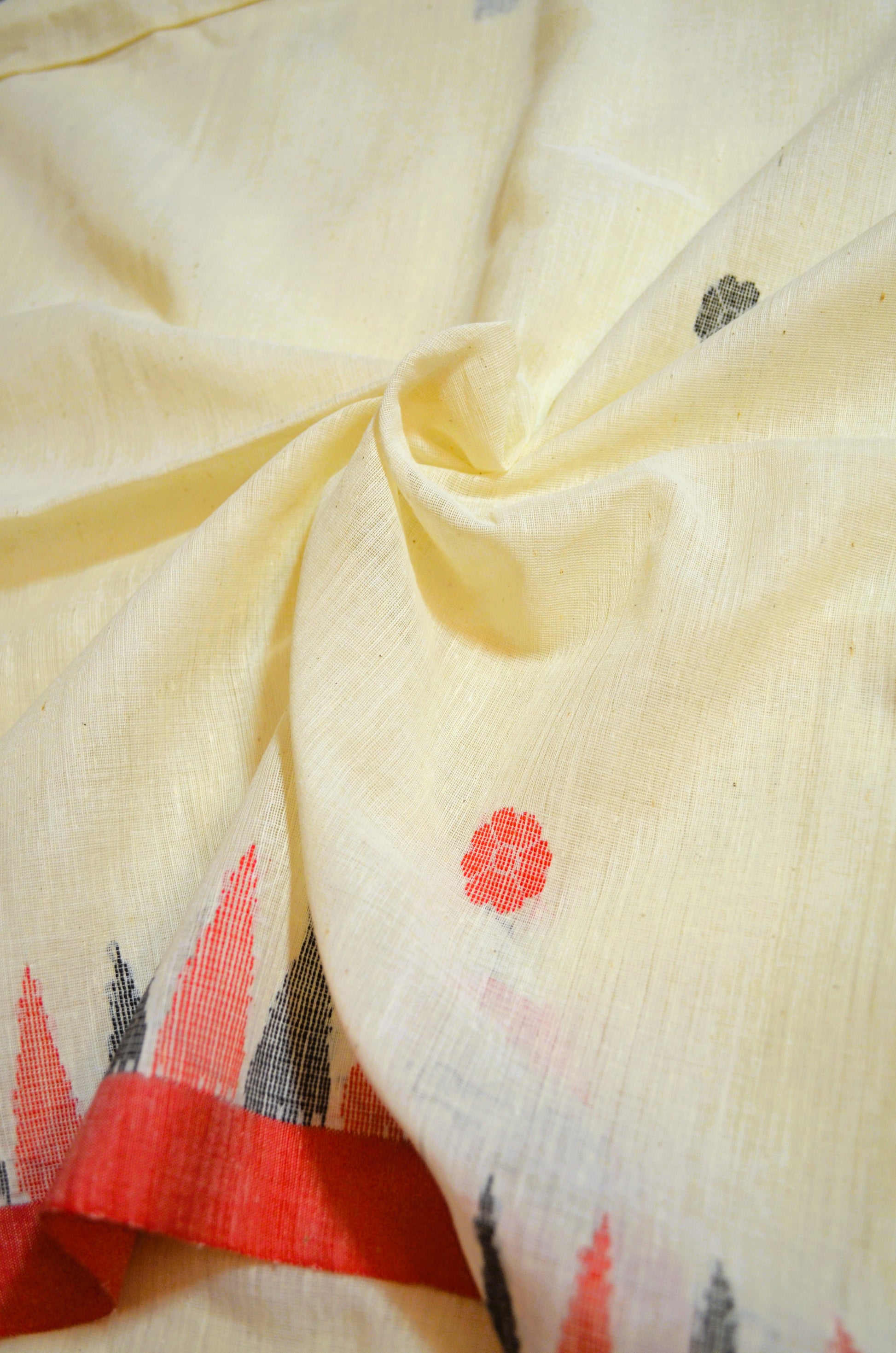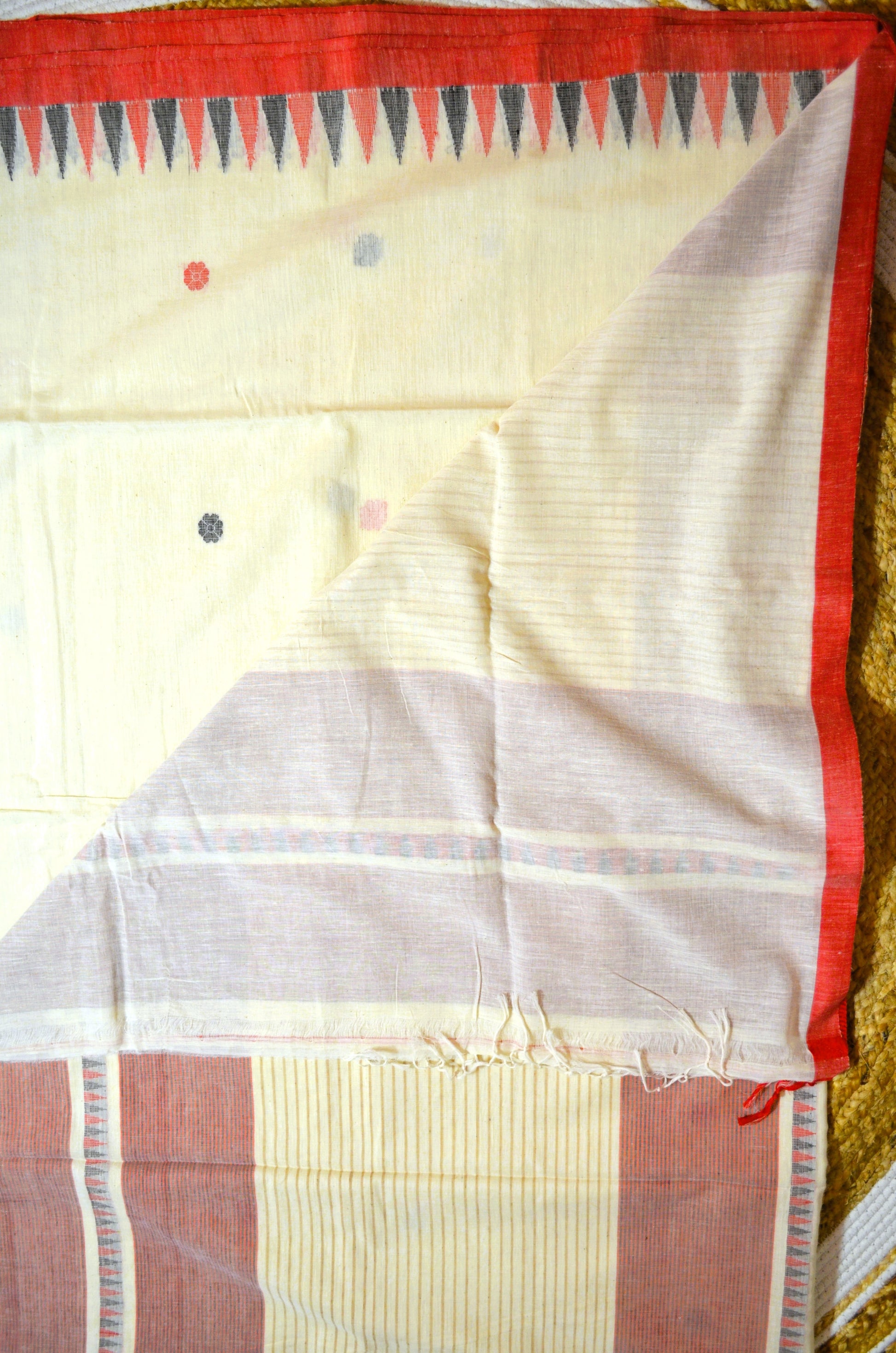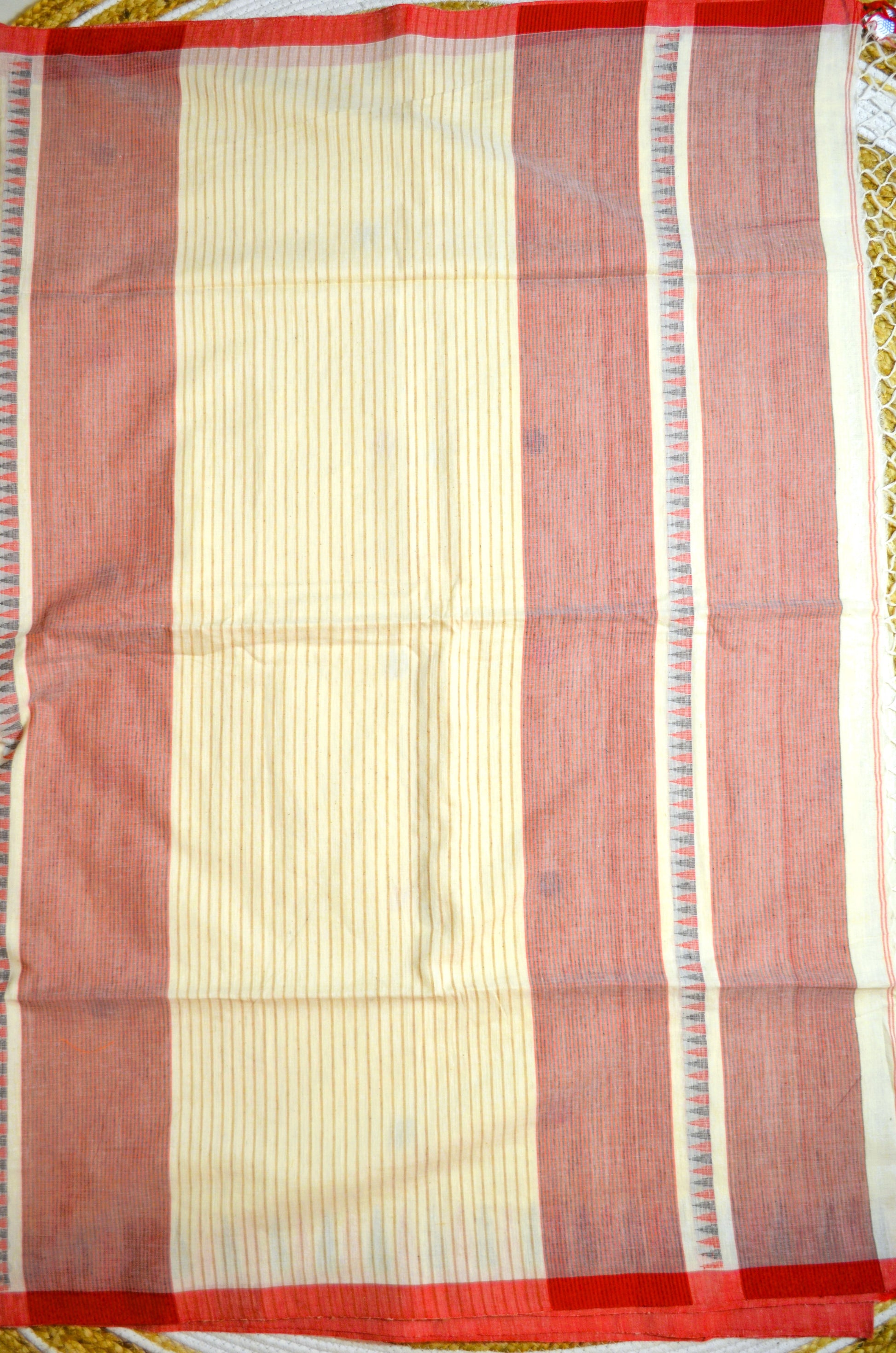 Cream Buttery Mul Cotton Bengal Muslin Tangail Handloom Saree