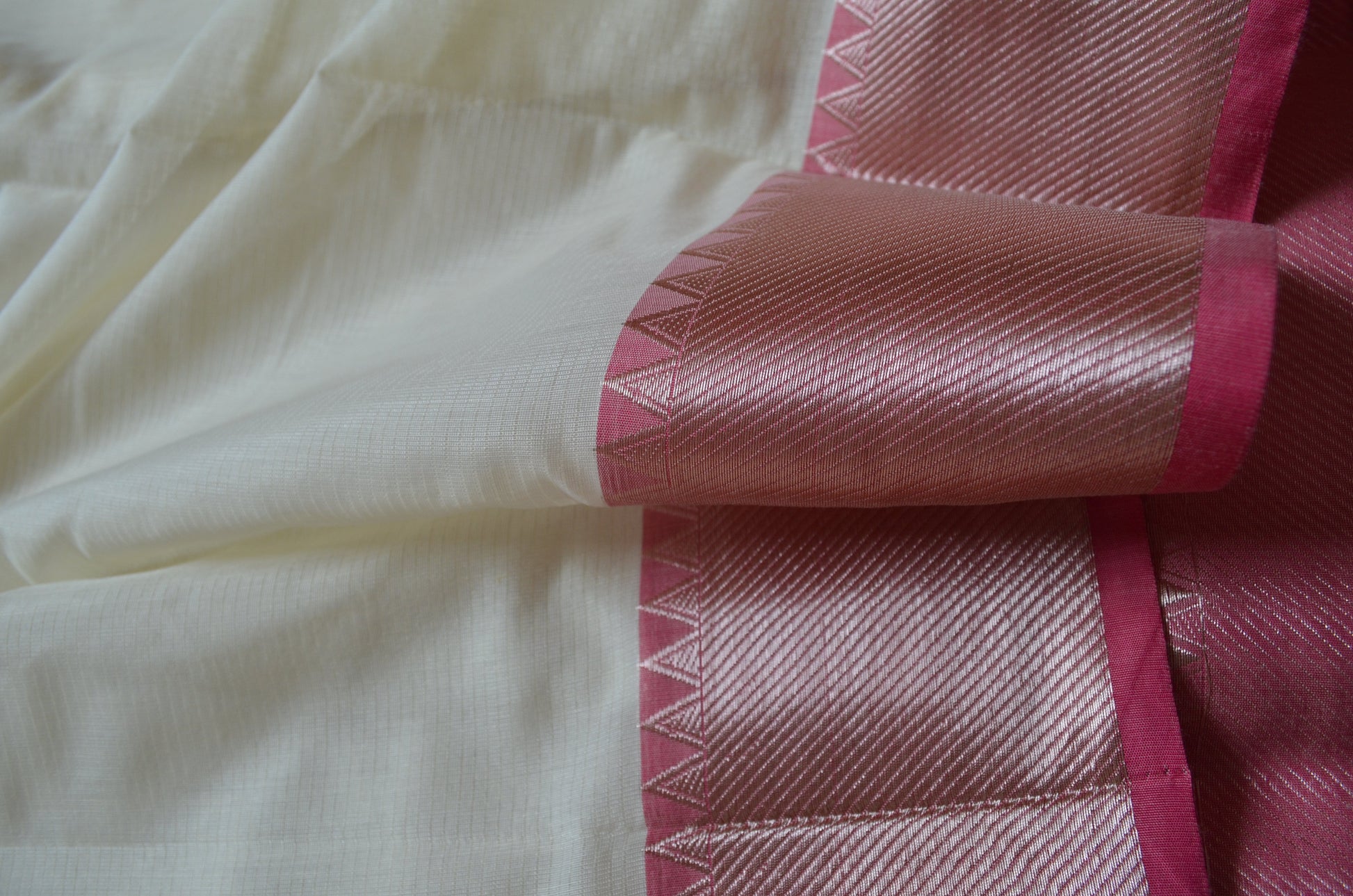 Cream Pink Mangalagiri Cotton Silk Handloom Saree