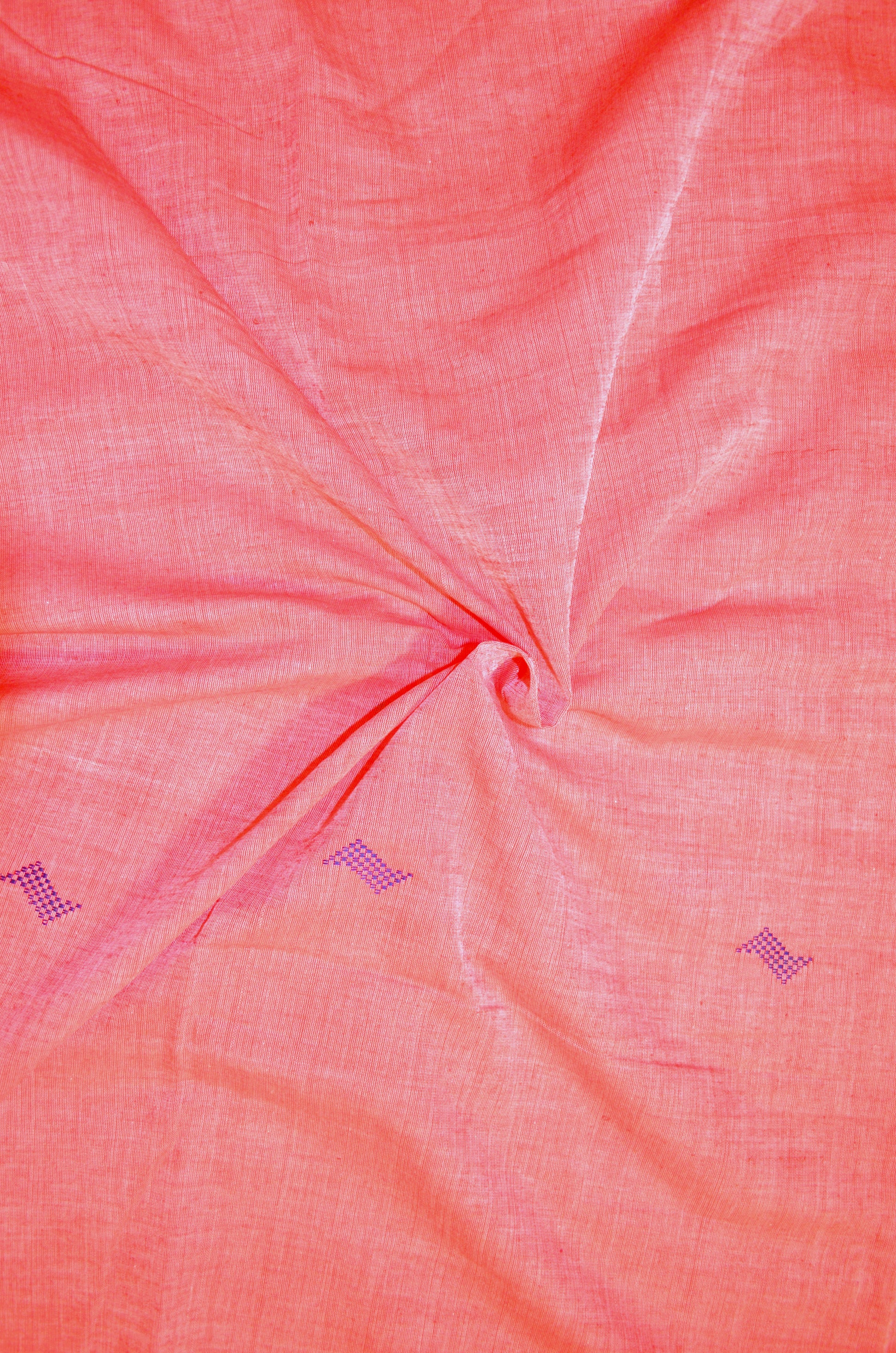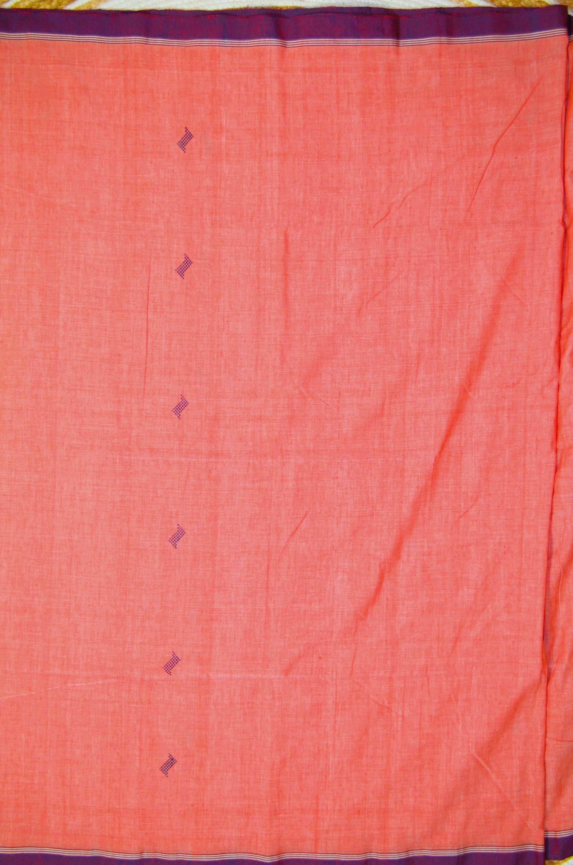 Dark Peach Buttery Mul Cotton Bengal Muslin Handloom Saree