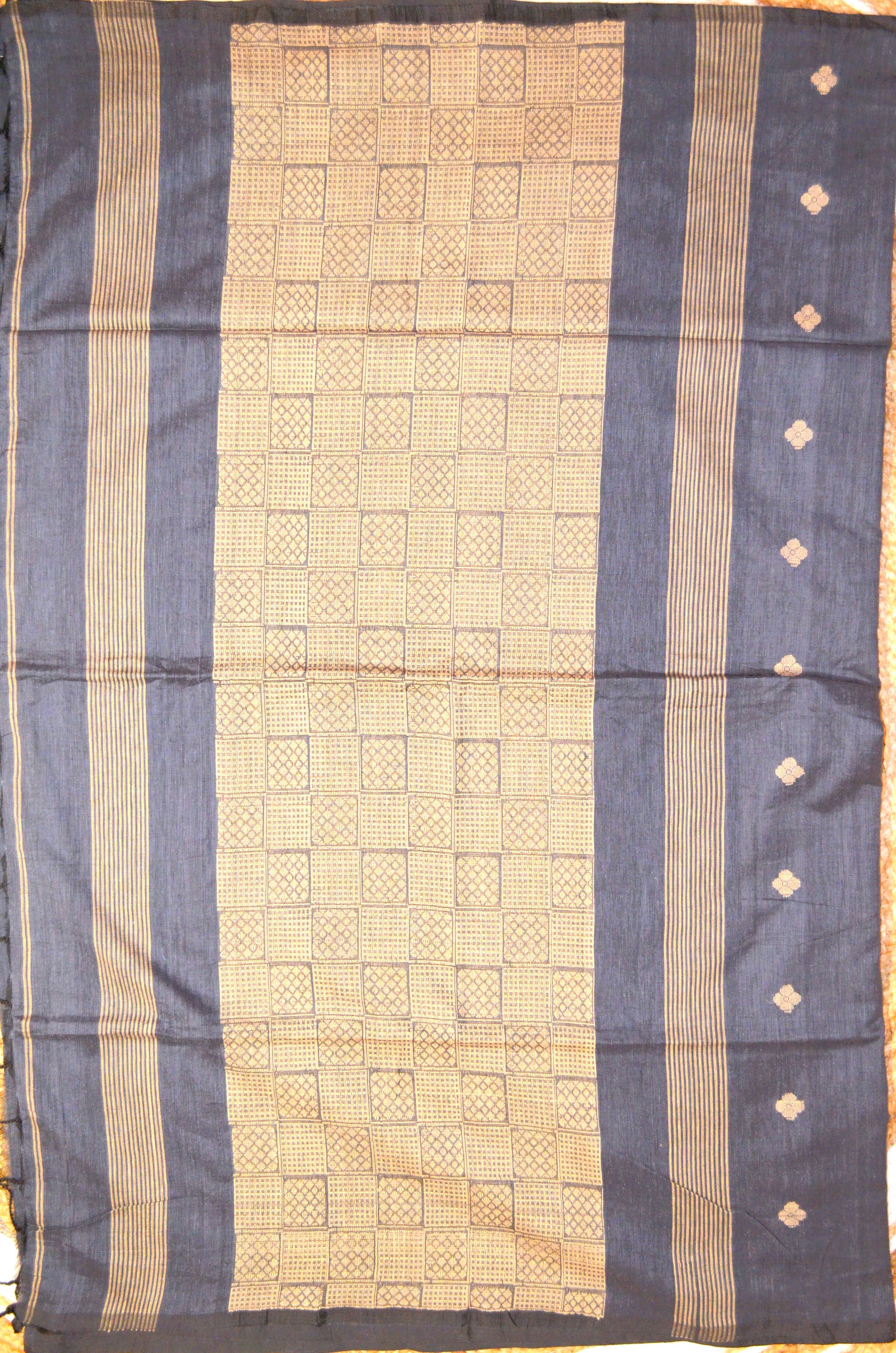 Dark Steel Buttery Mul Cotton Bengal Muslin Ghicha Handloom Saree