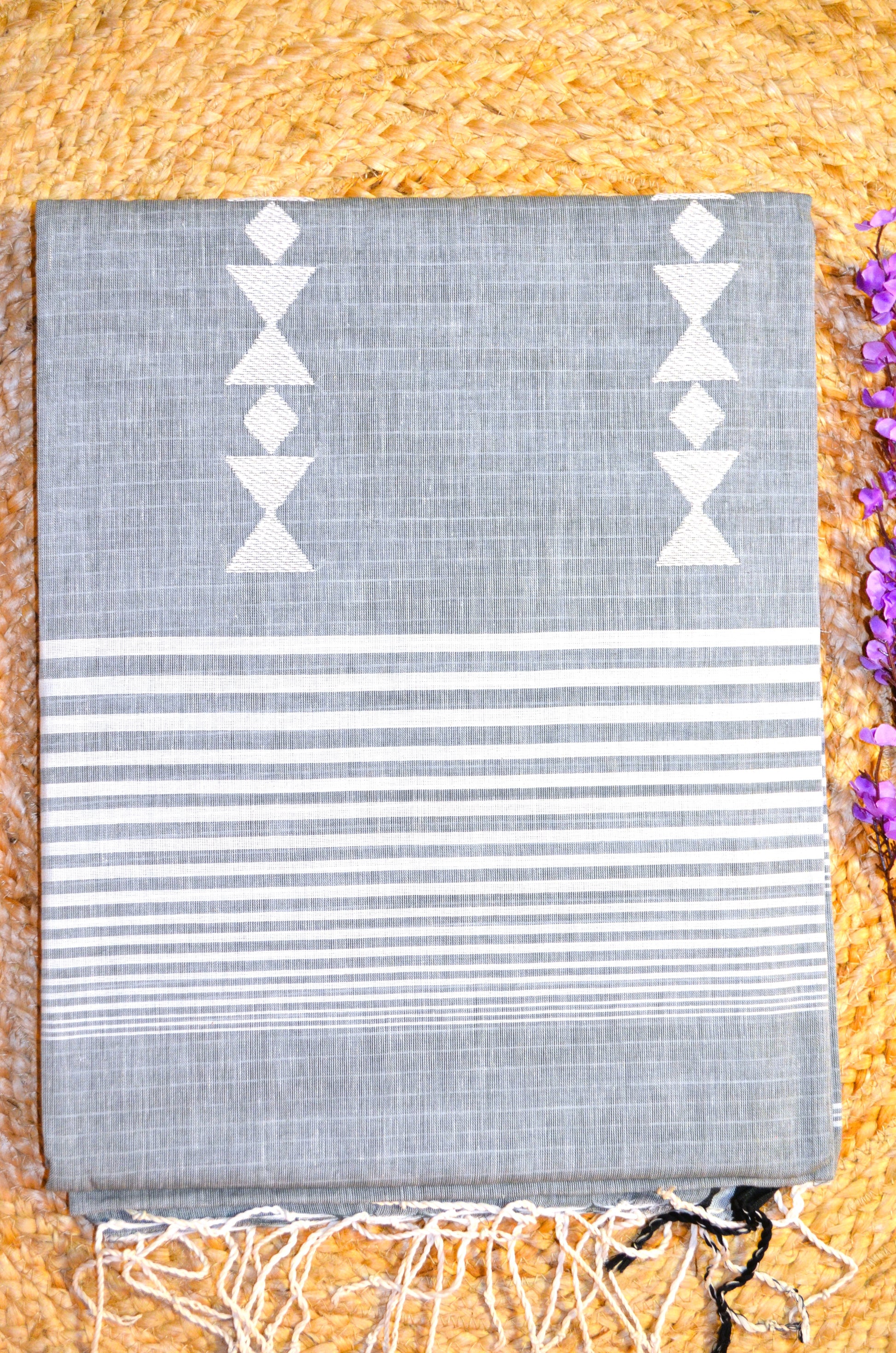 Grey Buttery Mul Cotton Bengal Tangail Handloom Saree