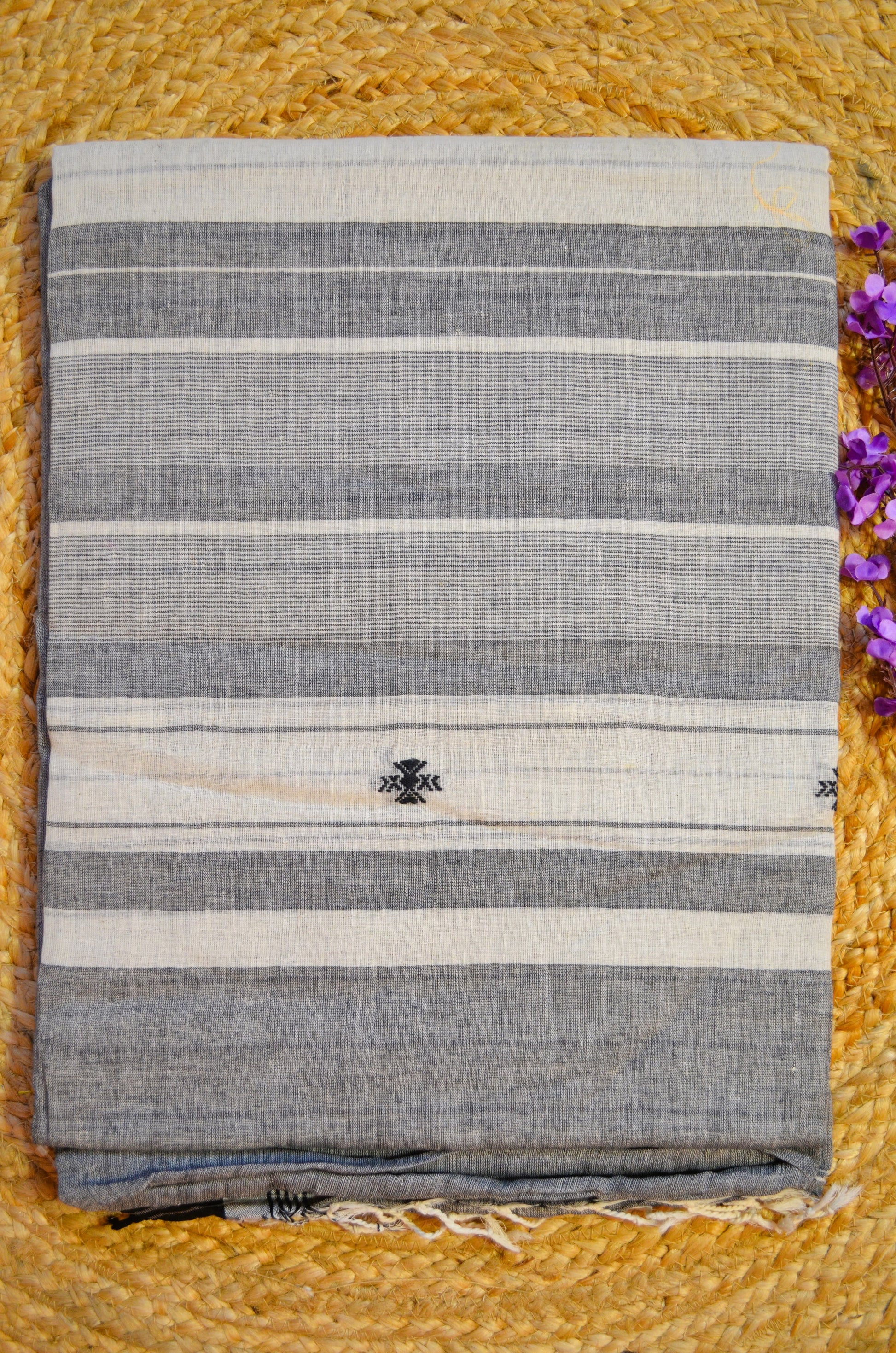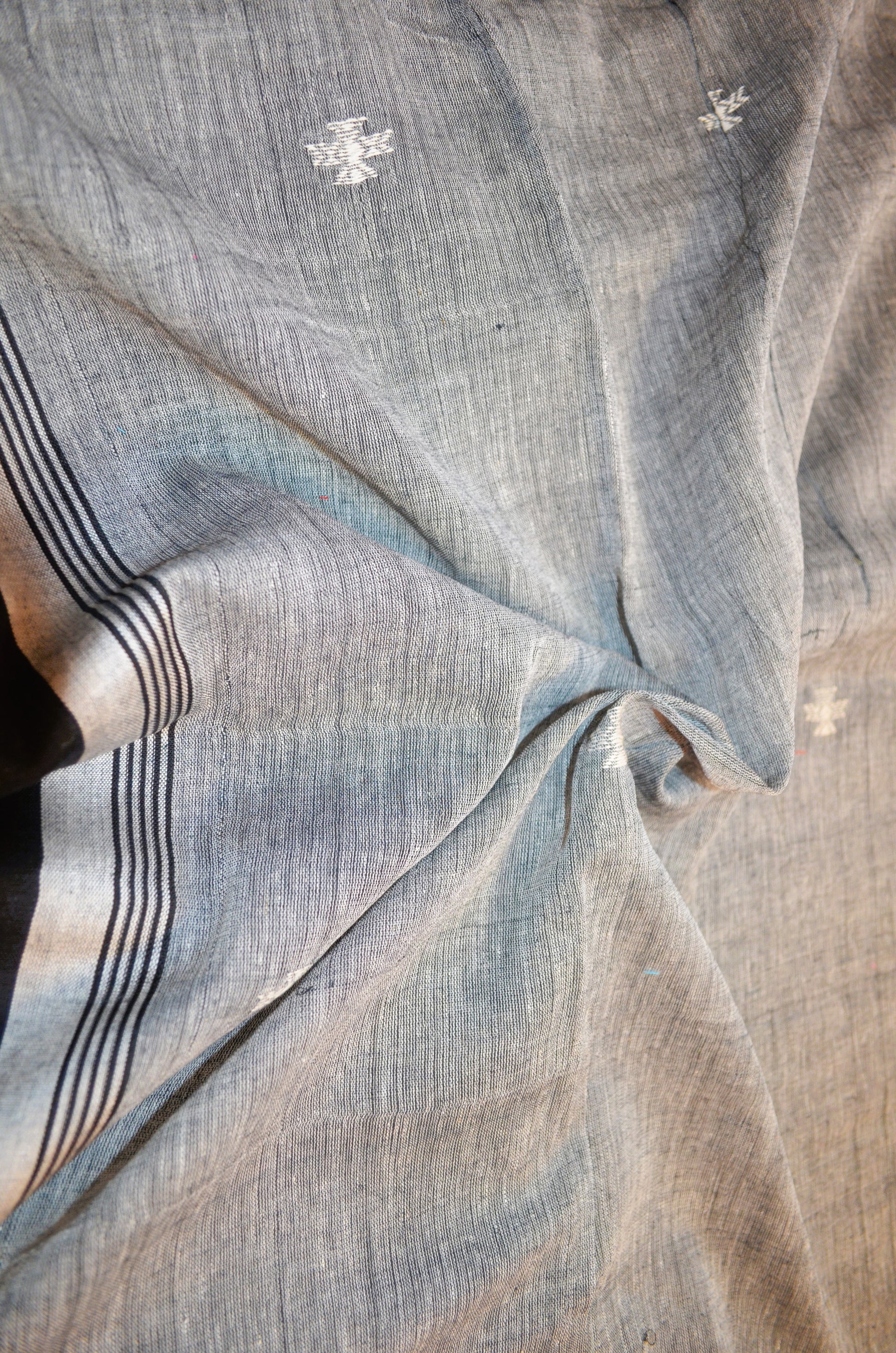 Grey White Buttery Mul Cotton Bengal Khadi Handloom Saree