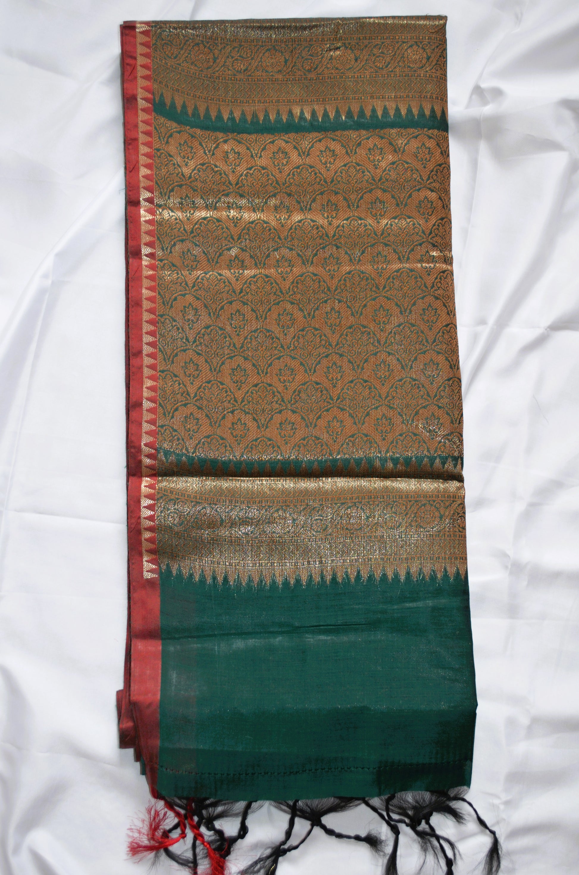 These sarees blend the opulence of silk with the comfort of cotton, adorned with intricate zari work. Perfect for any occasion, they offer unmatched comfort and sustainable fashion.