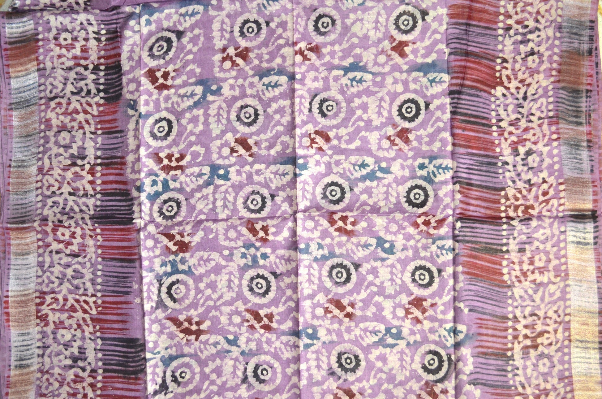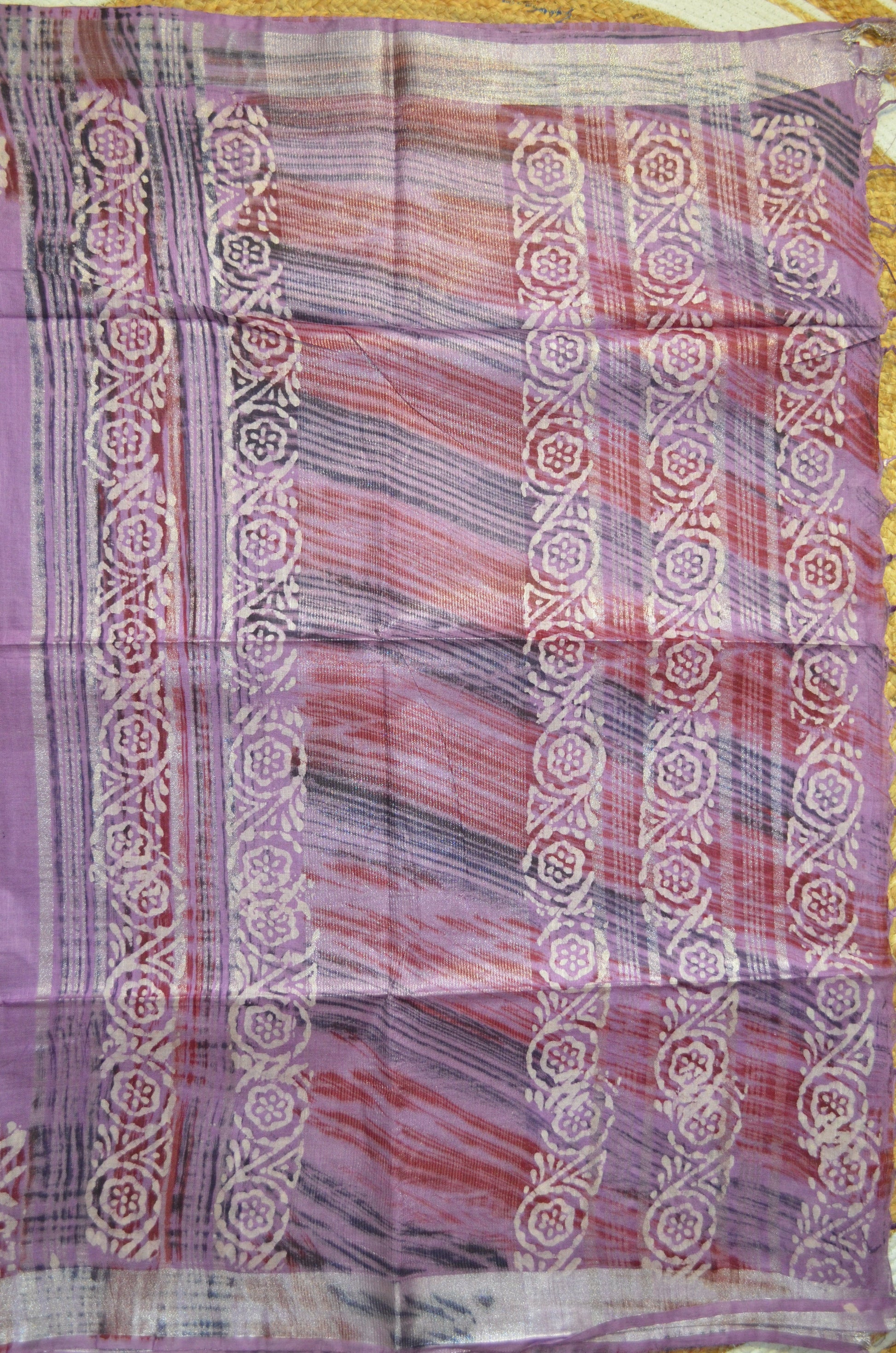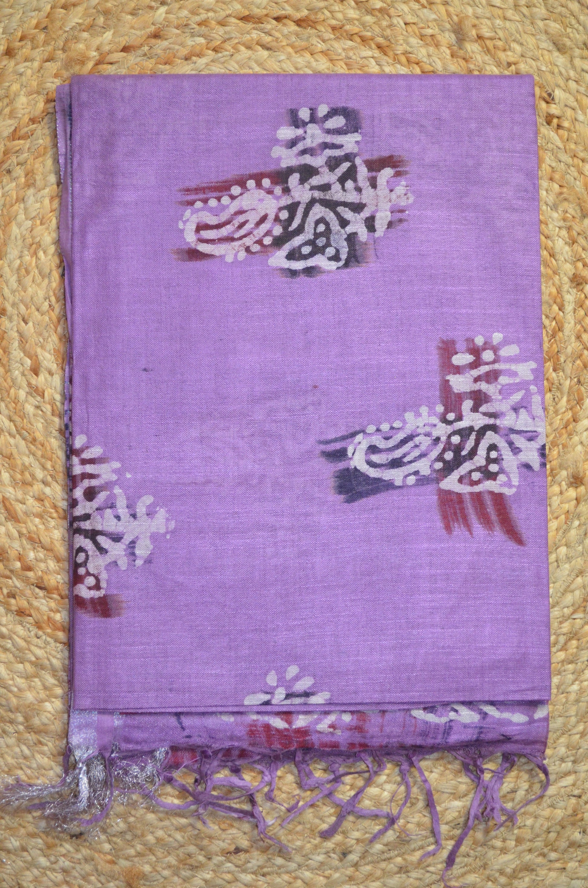Lavender Block Print Linen Handloom Saree