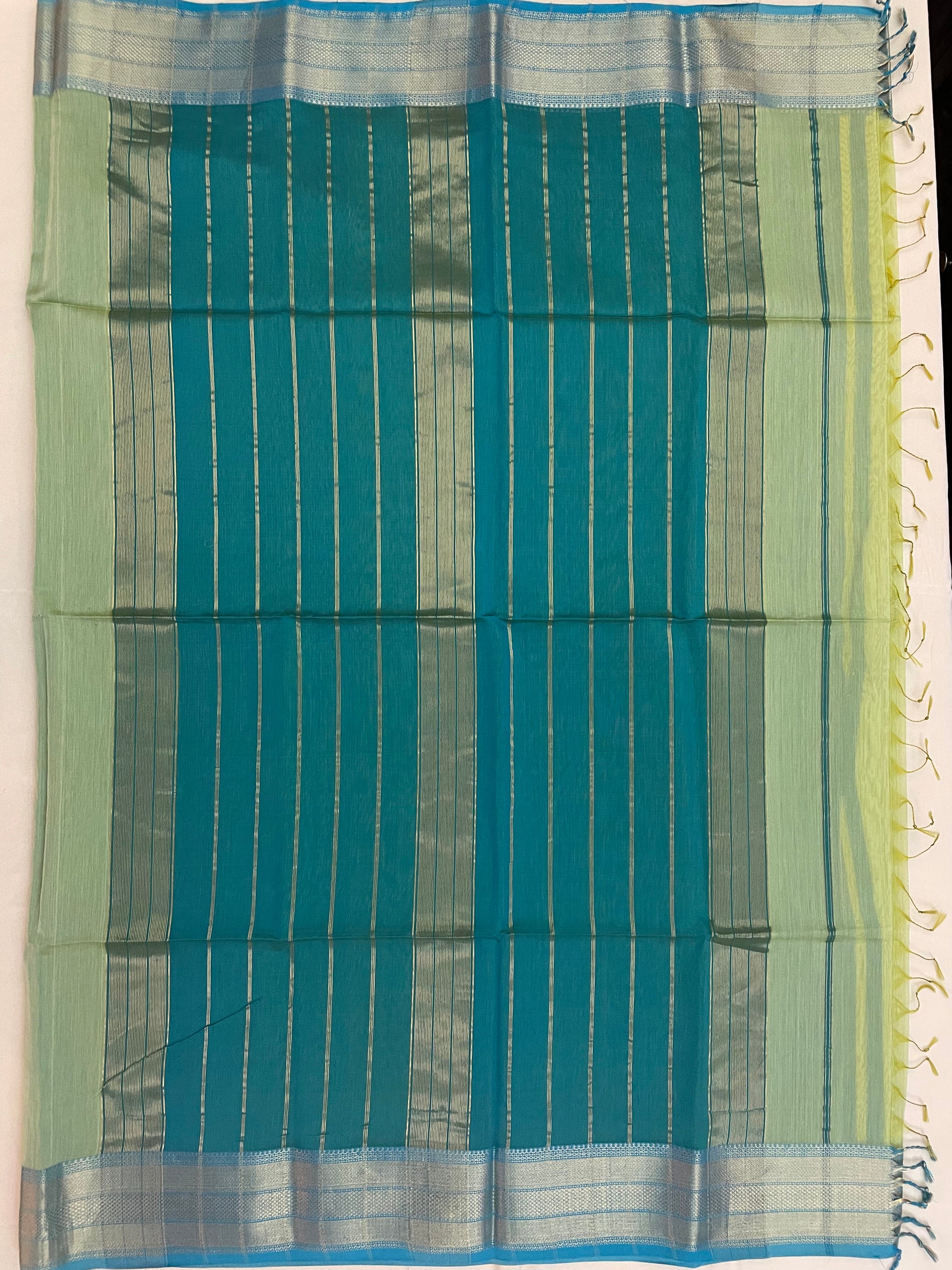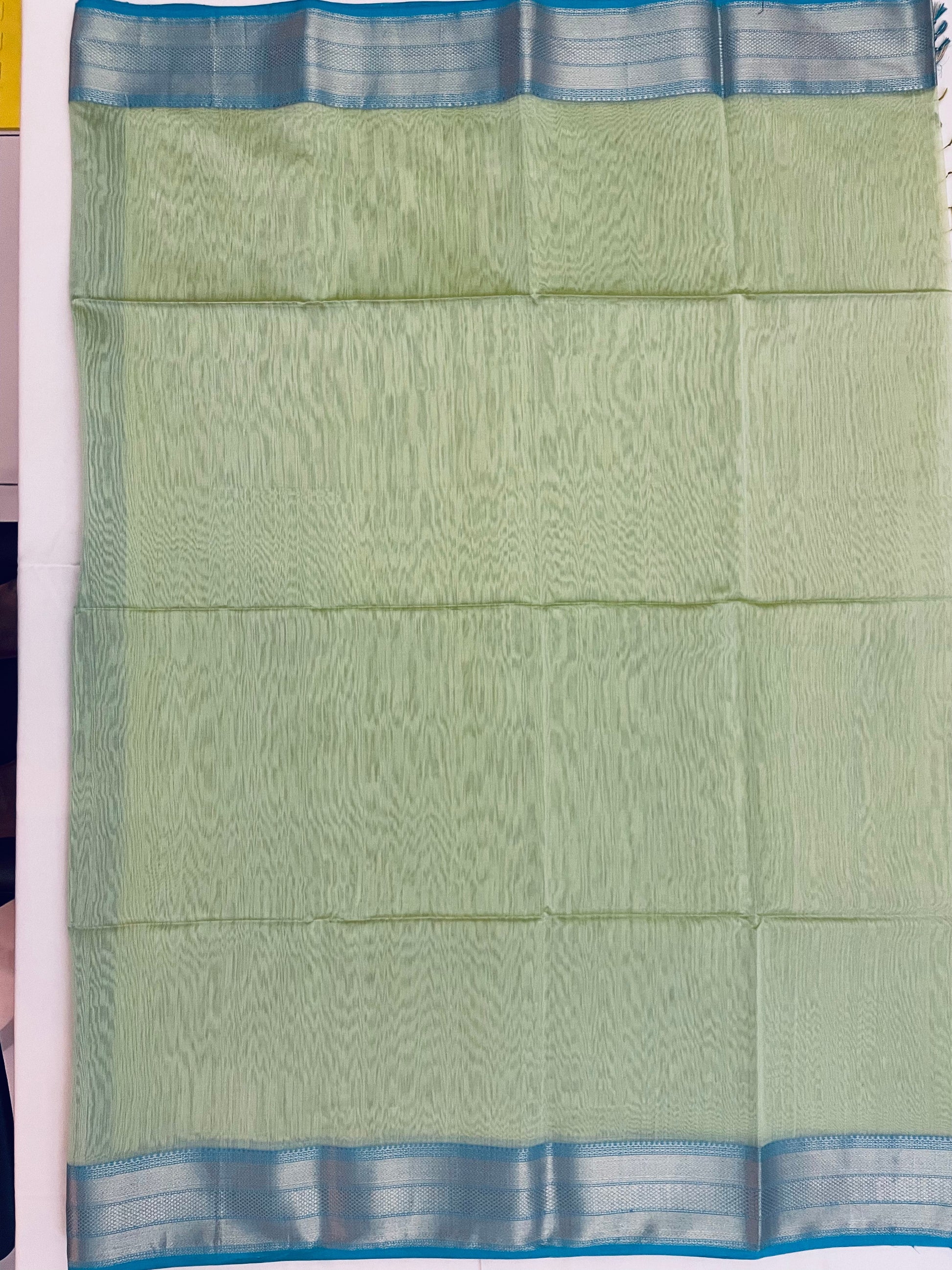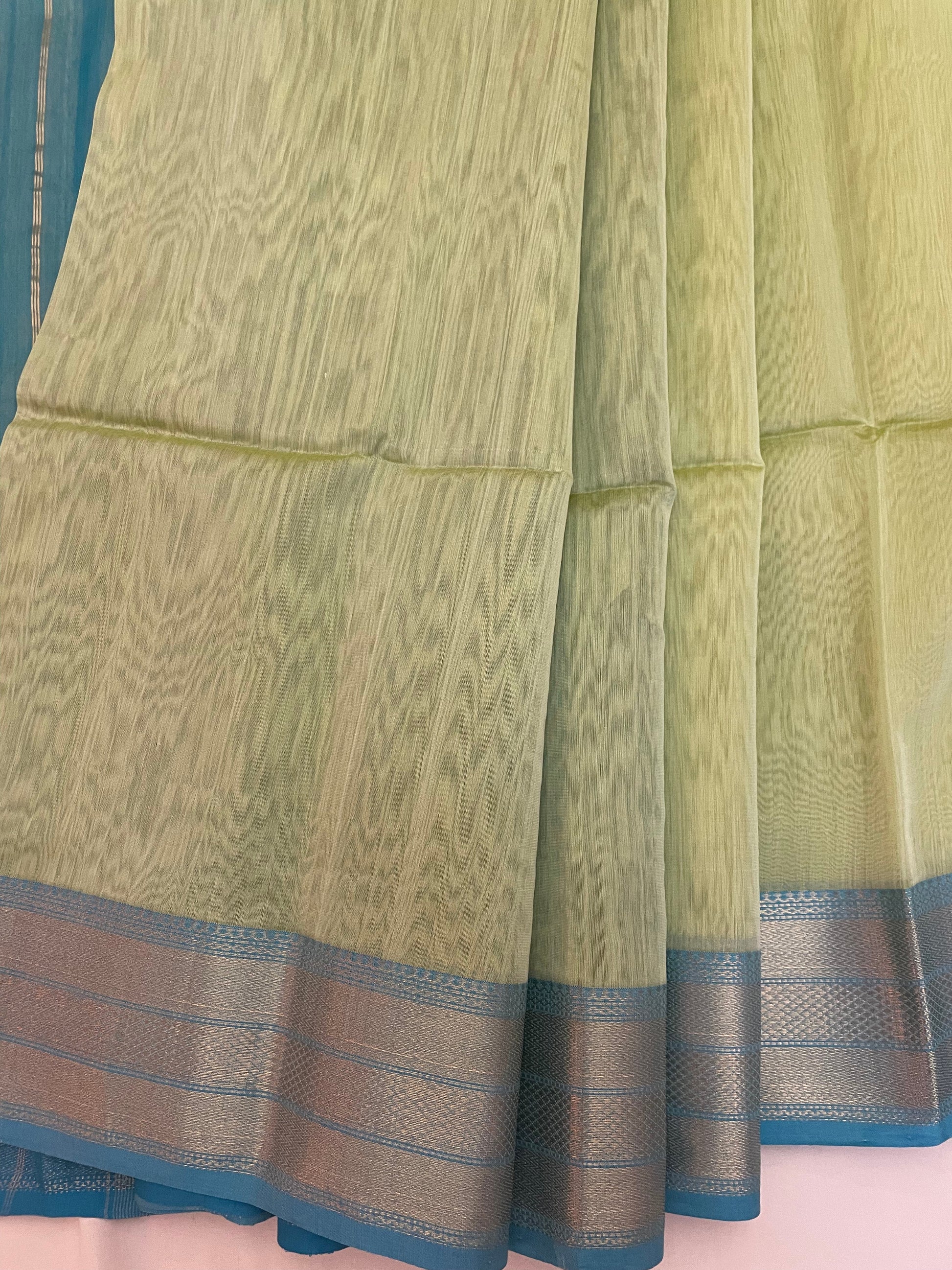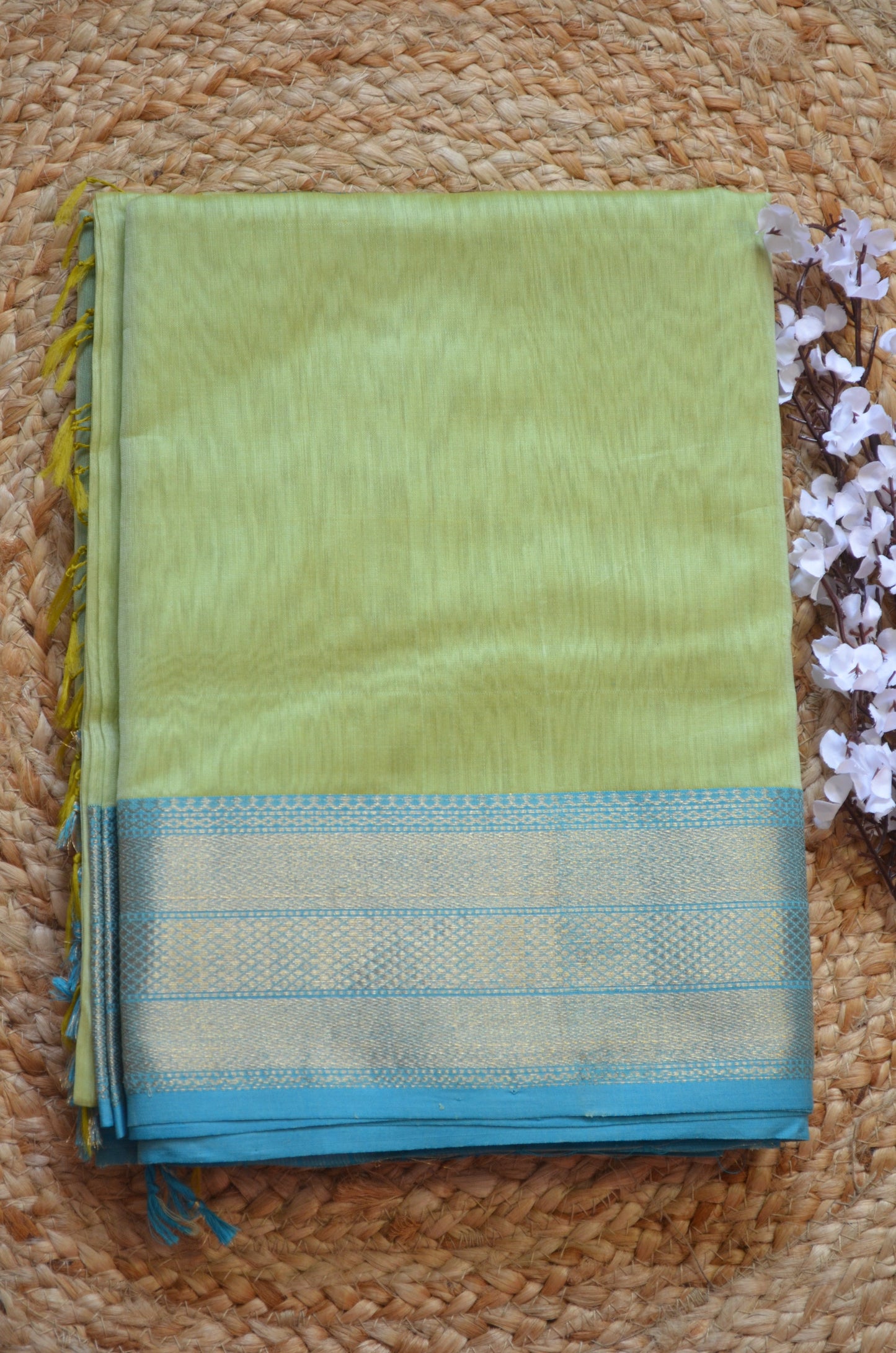 Light Pista Maheshwari Pure Silk Handloom Saree with Metal Zari