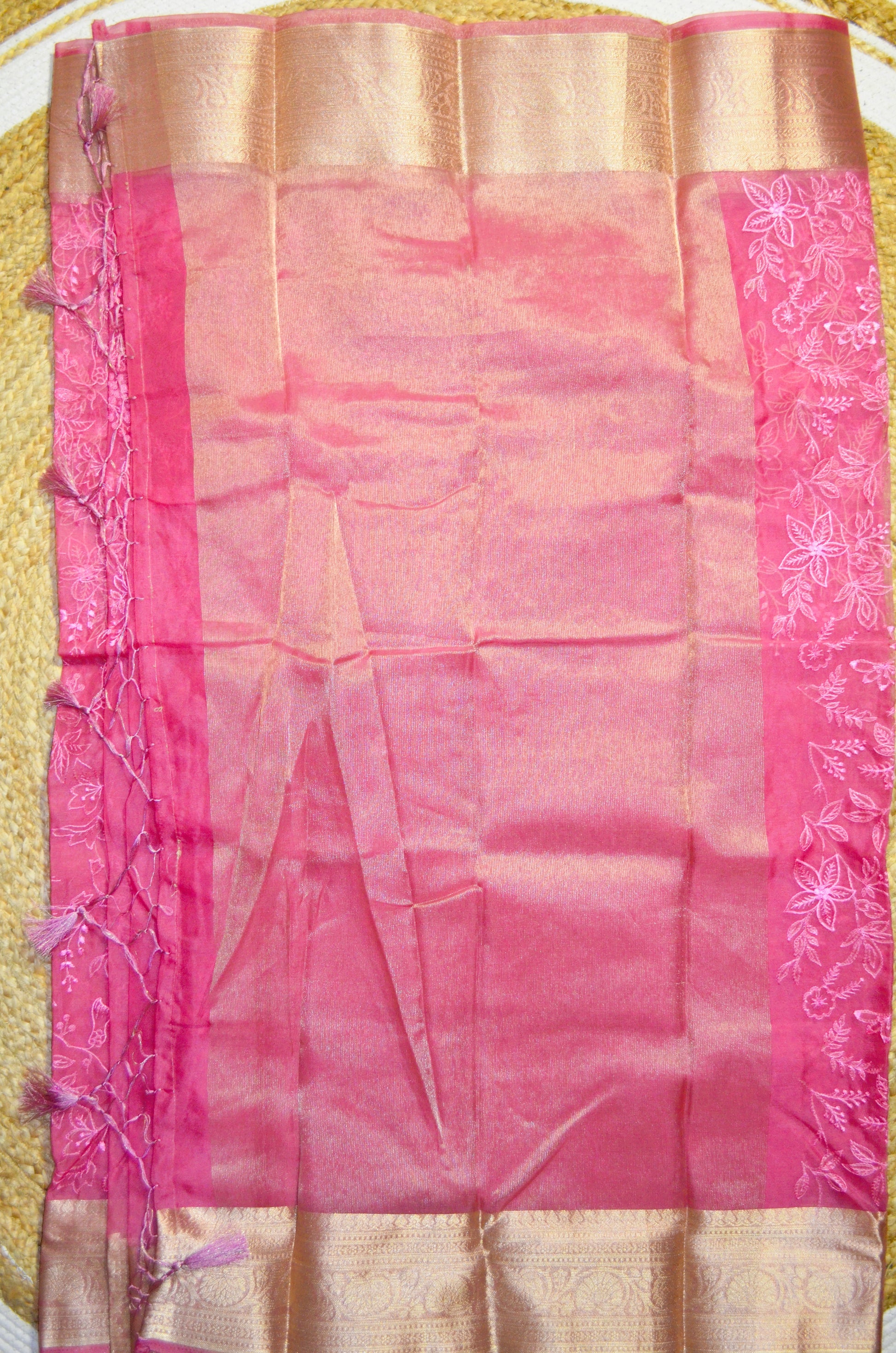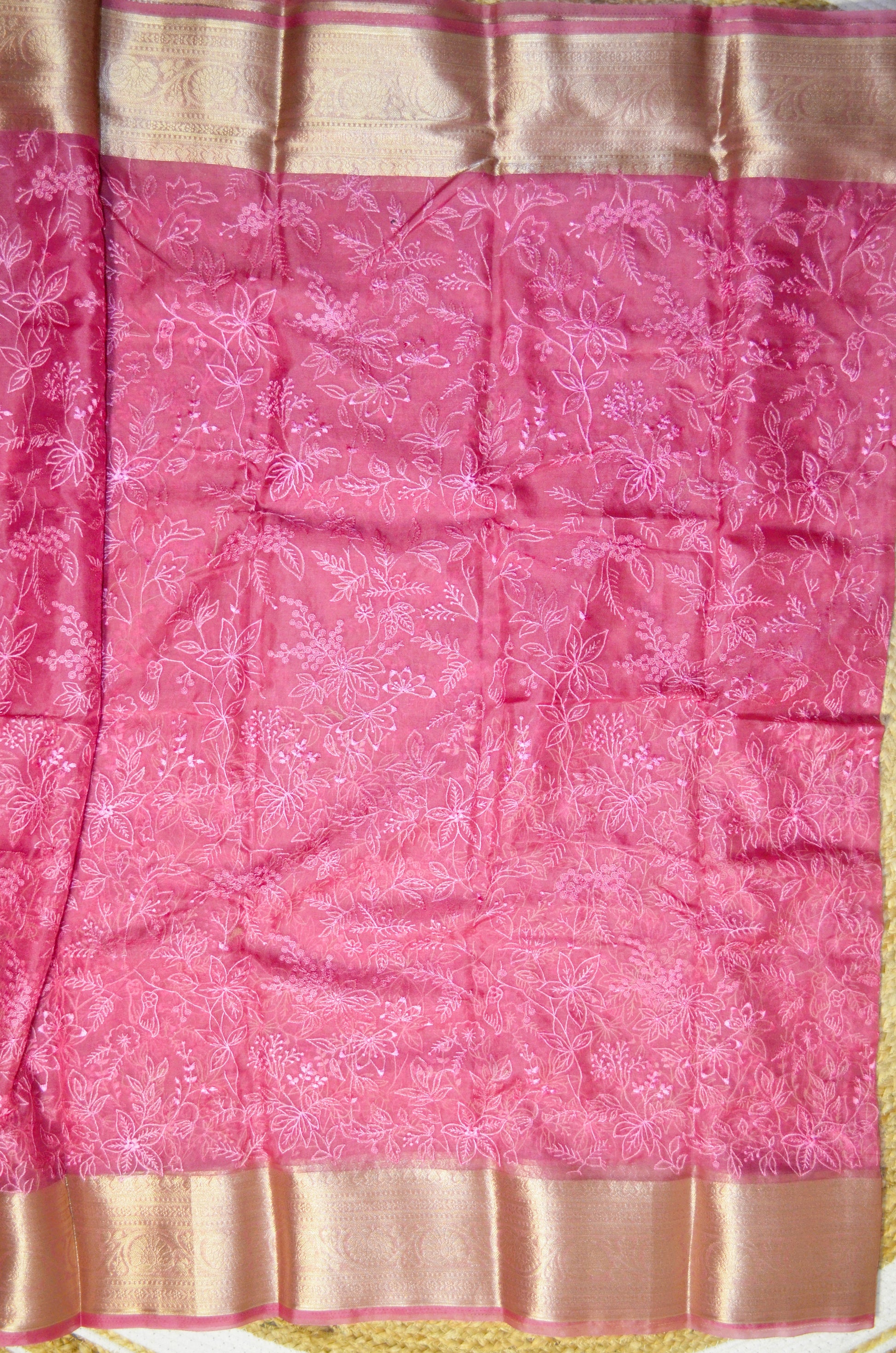 These sarees feature intricate Chikankari embroidery, showcasing the delicate artistry of Lucknow. Perfect for any grand occasion, they offer a blend of elegance and sophistication.