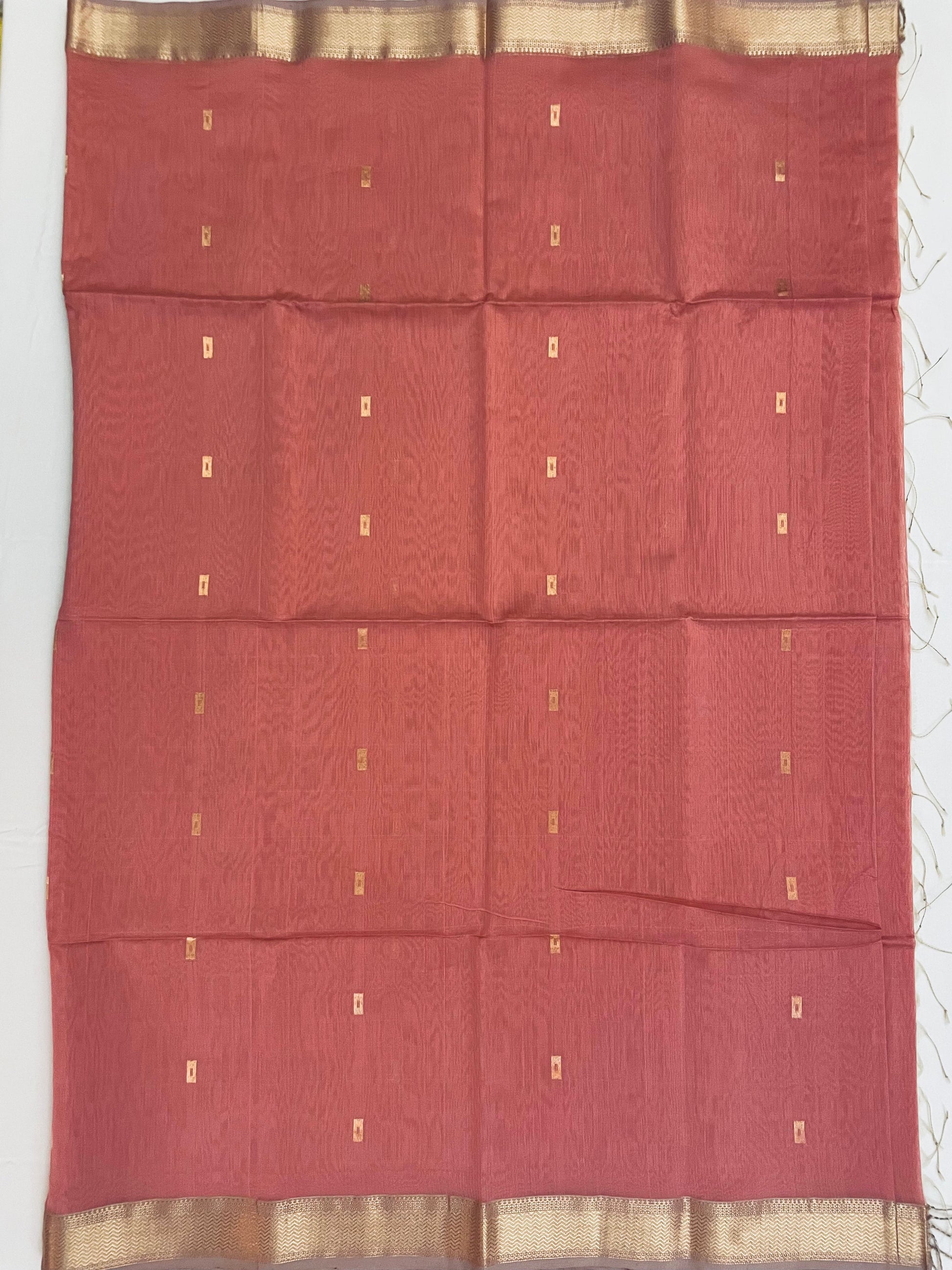Peach Maheshwari Pure Silk Handloom Saree with Metal Zari