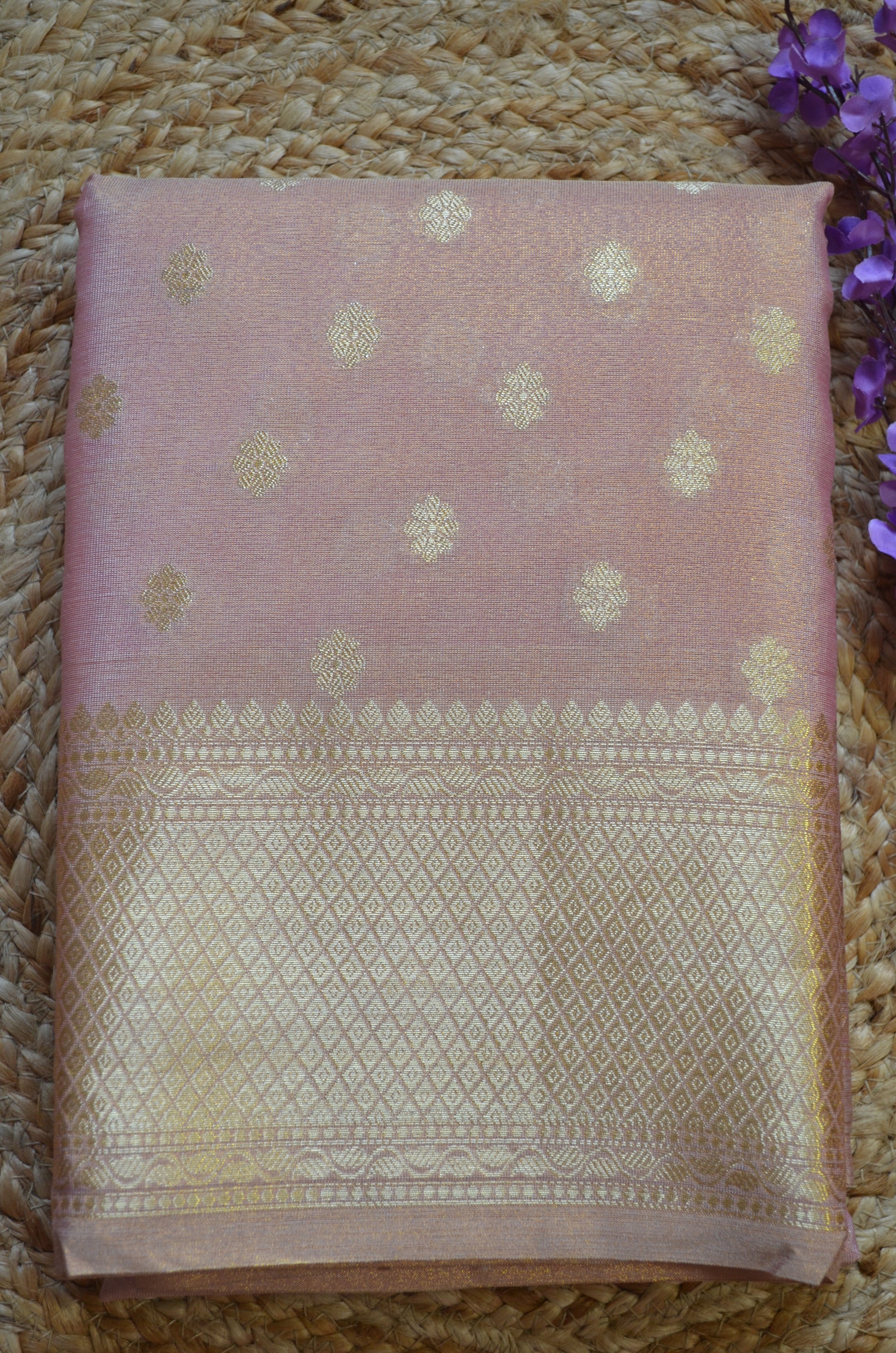 The Tissue Silk Zari Work Banarasi Saree exudes opulence with its shimmering tissue silk fabric and intricate zari embroidery. Perfect for grand occasions, it combines traditional Banarasi craftsmanship with a touch of modern elegance.