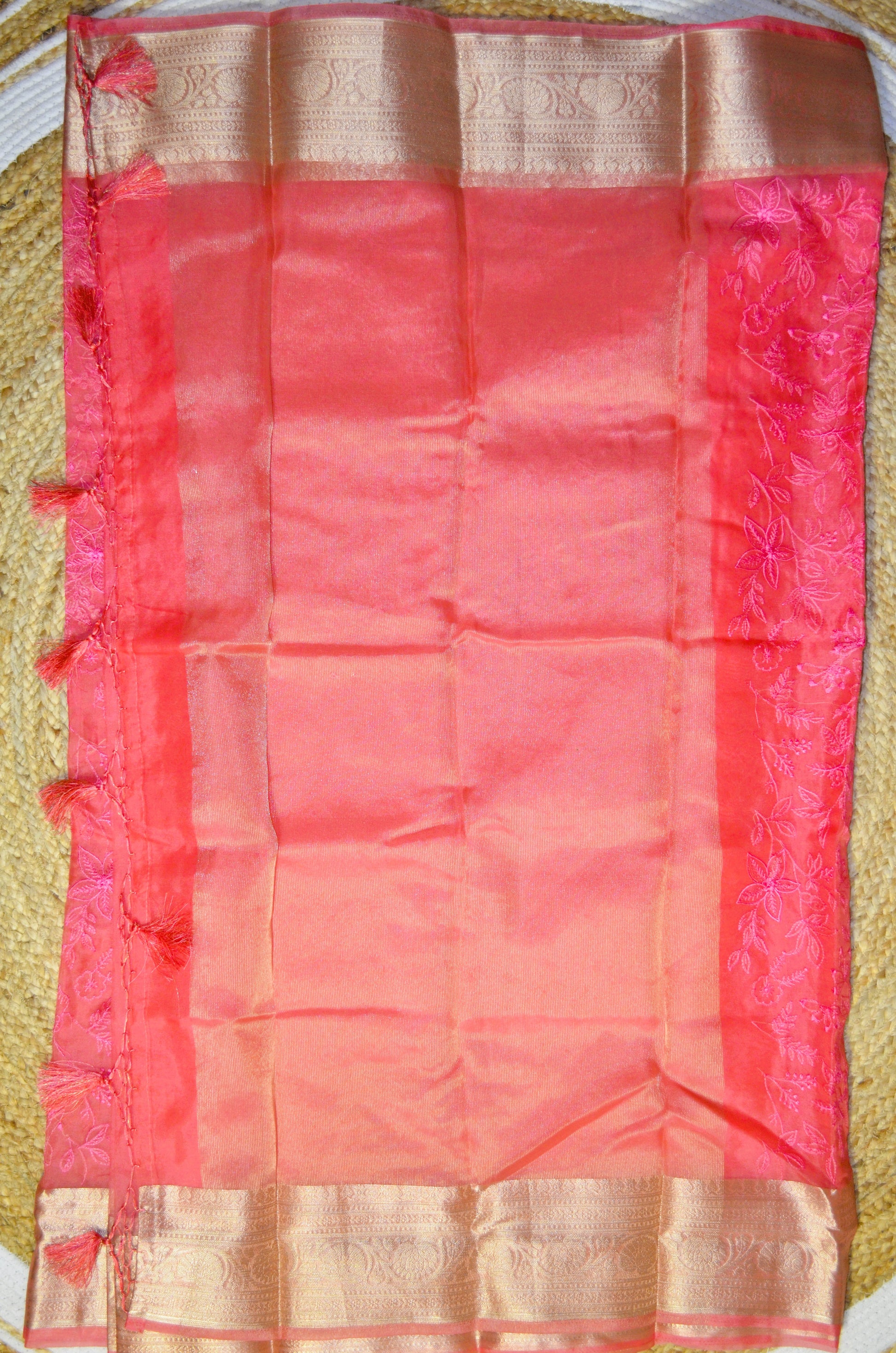 These sarees feature intricate Chikankari embroidery, showcasing the delicate artistry of Lucknow. Perfect for any grand occasion, they offer a blend of elegance and sophistication.