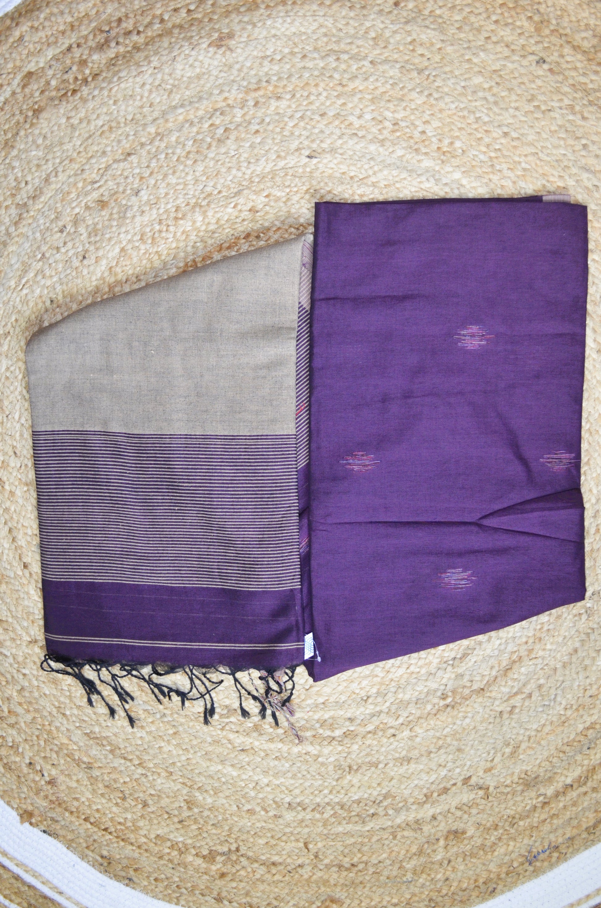 Purple Buttery Mul Cotton Bengal Muslin Ghicha Handloom Saree