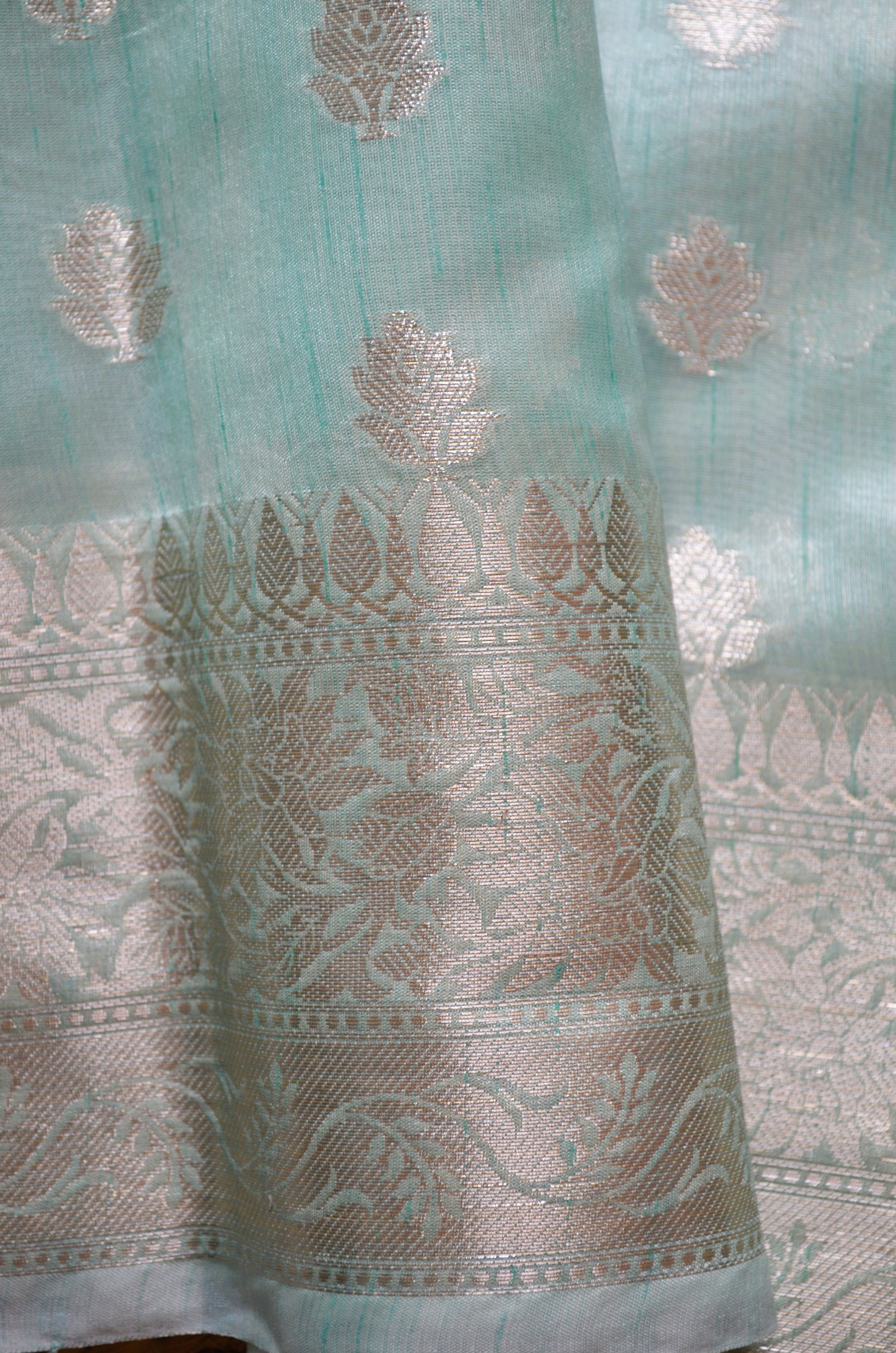Sea Green Woven Banarasi Zari Tissue Silk Saree