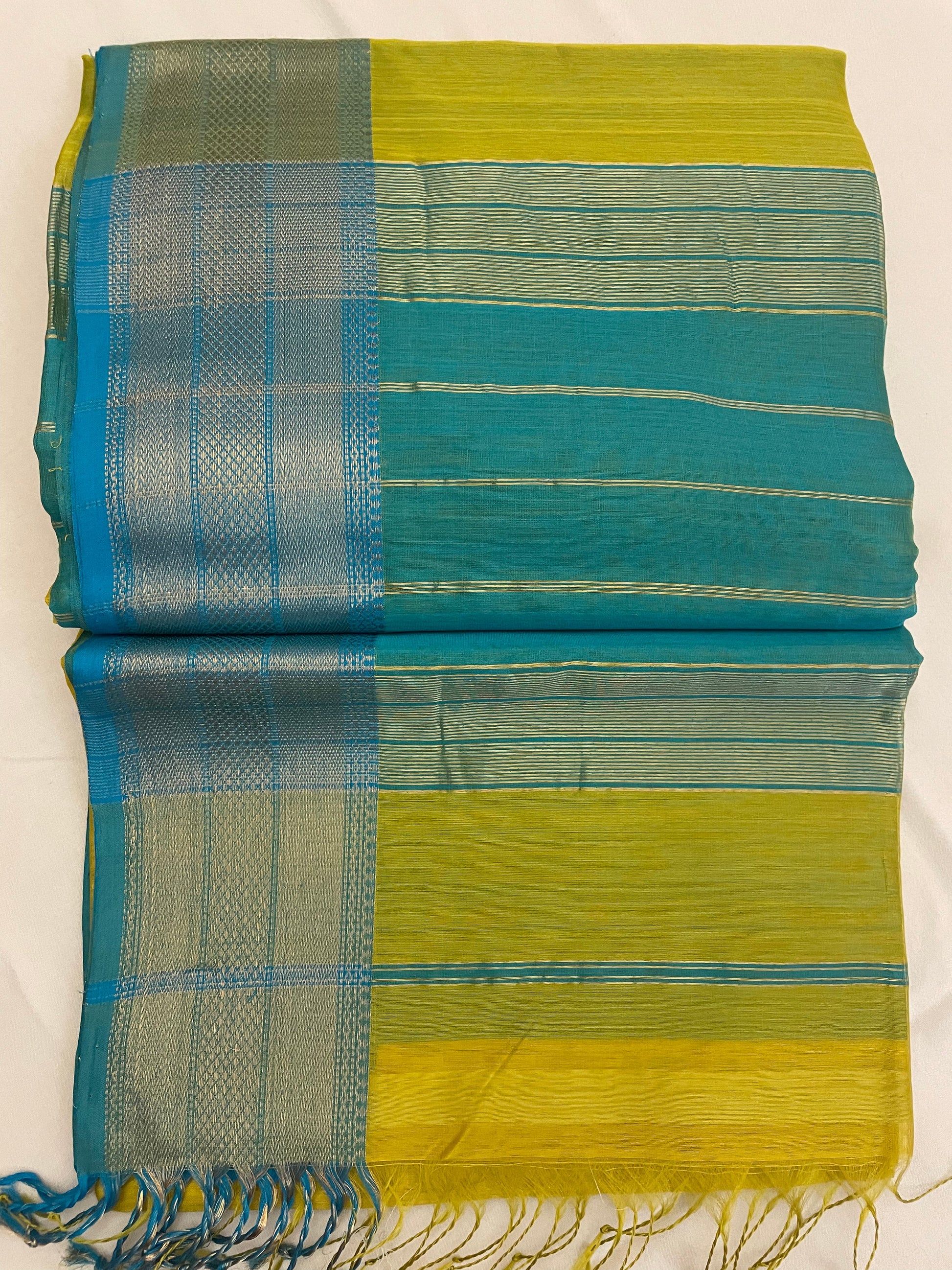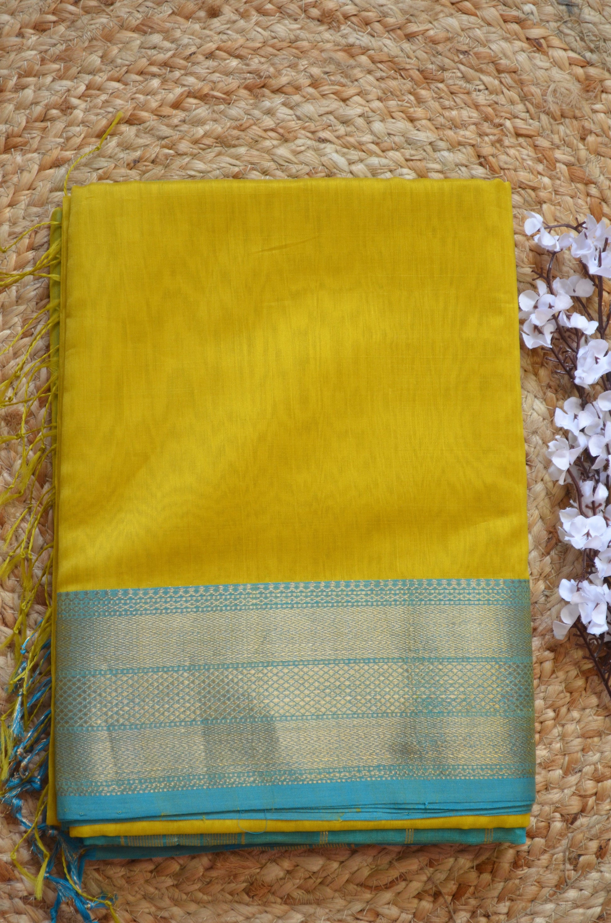 Sunflower Yellow Maheshwari Pure Silk Handloom Saree with Metal Zari